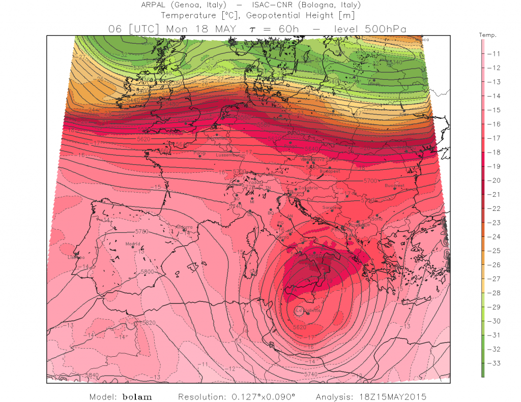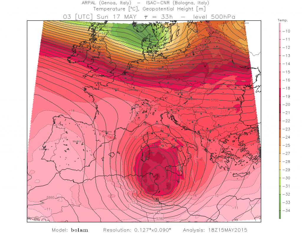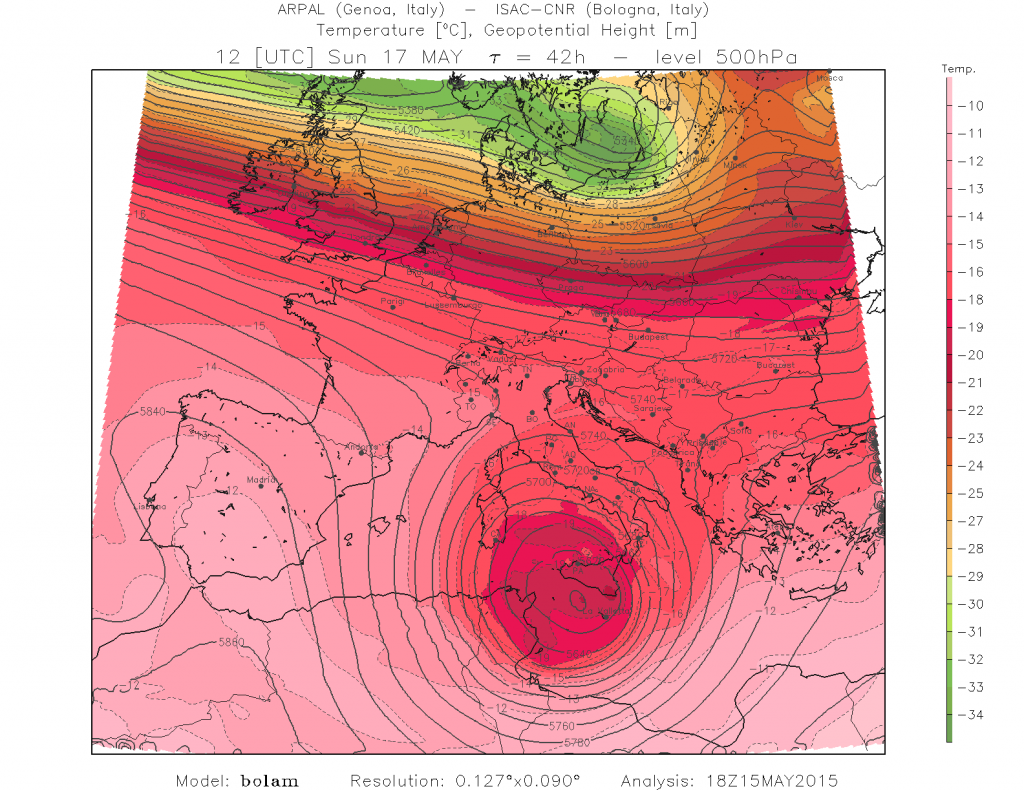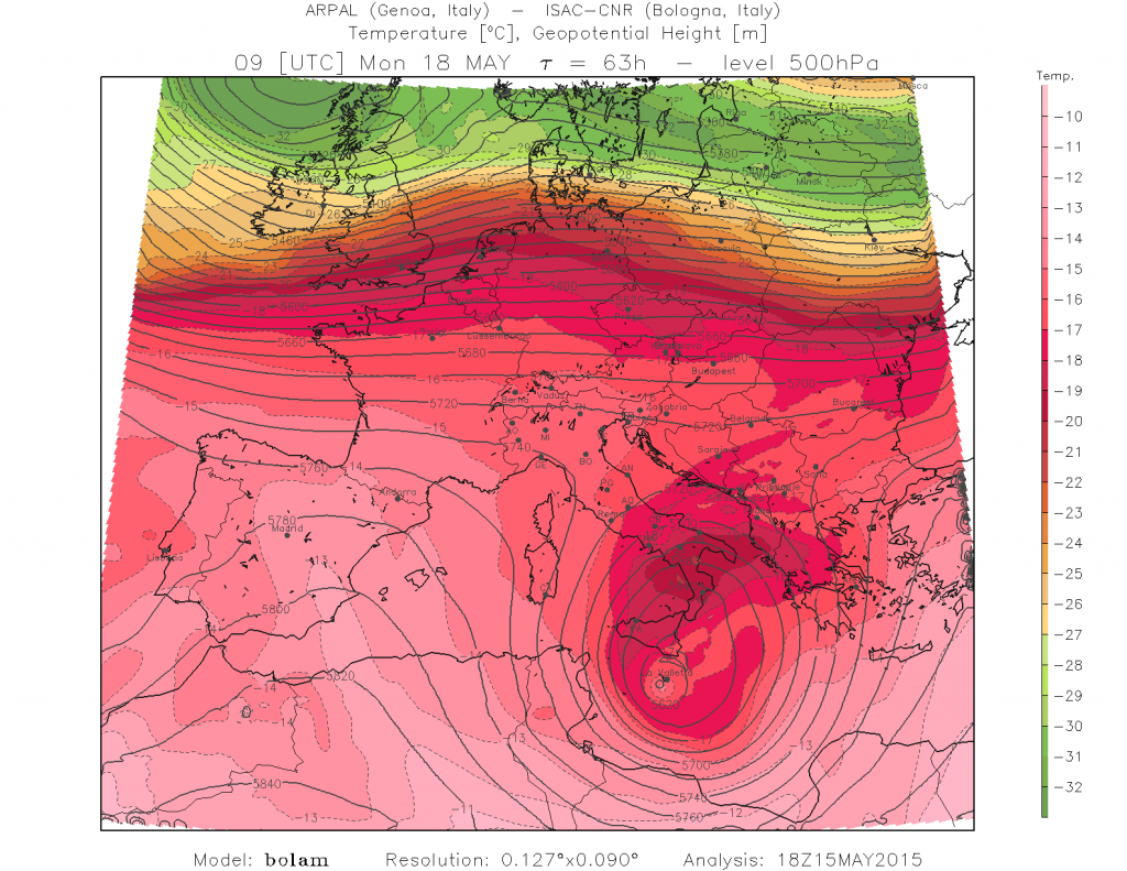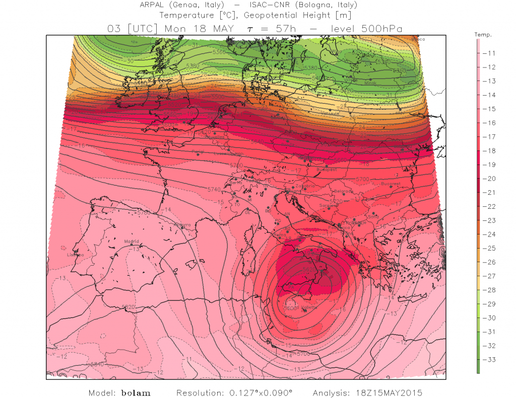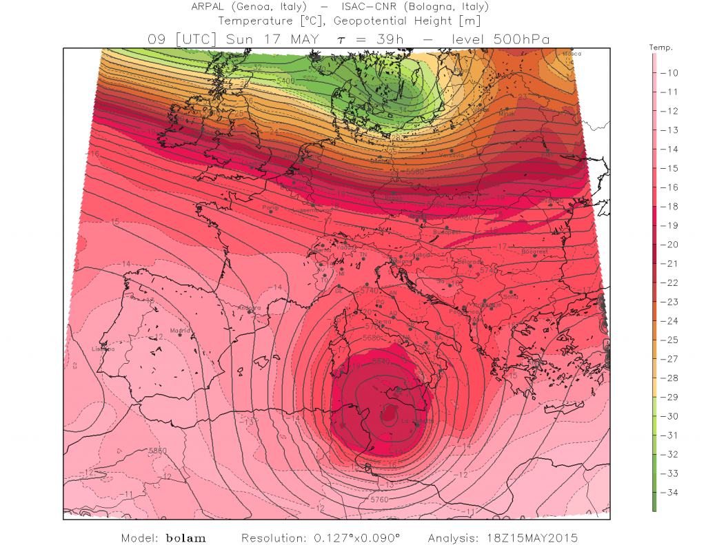 Saranno dapprima la Sicilia, tra stasera e domani, poi la Calabria nella giornata di lunedì 18 maggio, le Regioni più colpite dal maltempo che dopo i fenomeni estremi di ieri, adesso si sta spostando verso il Sud. Il ciclone associato ad una goccia fredda si trova sulla Sardegna, dove sono in atto piogge sparse e le temperature si mantengono decisamente basse dopo le minime fredde di stamattina. Cagliari non supera i +19°C, massima di +18°C invece a Oristano, addirittura Sassari è ferma a +17°C nelle ore più calde della giornata. Il maltempo non è particolarmente violento, ma i fenomeni si intensificheranno nelle prossime ore arrivando in Sicilia, dove ieri le temperature hanno raggiunto picchi diffusi di +37°C sulla fascia tirrenica.