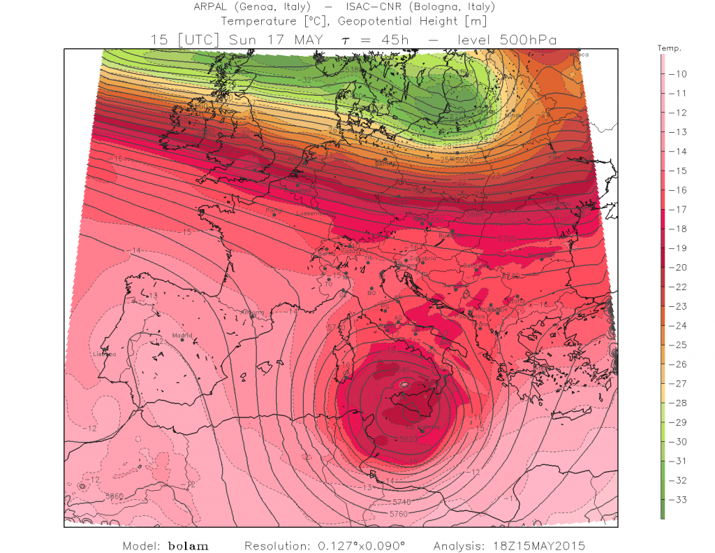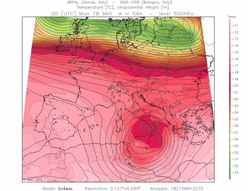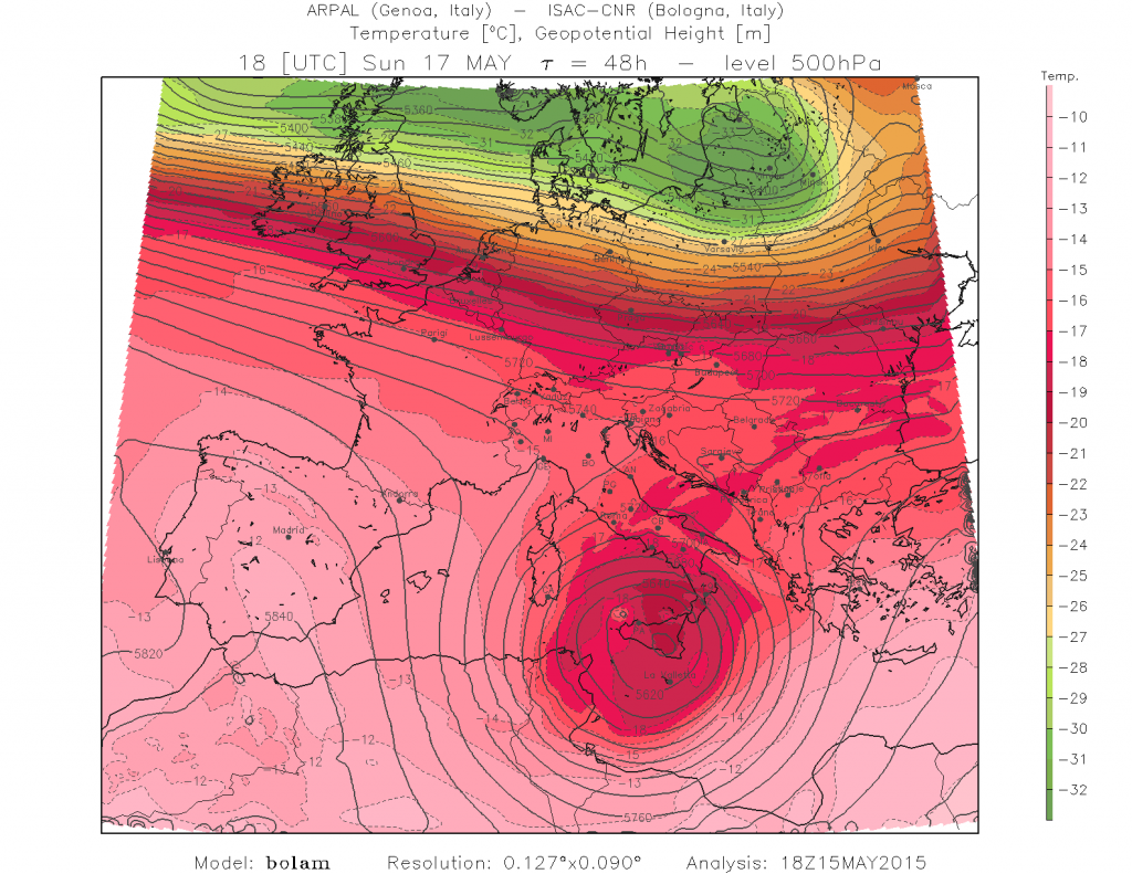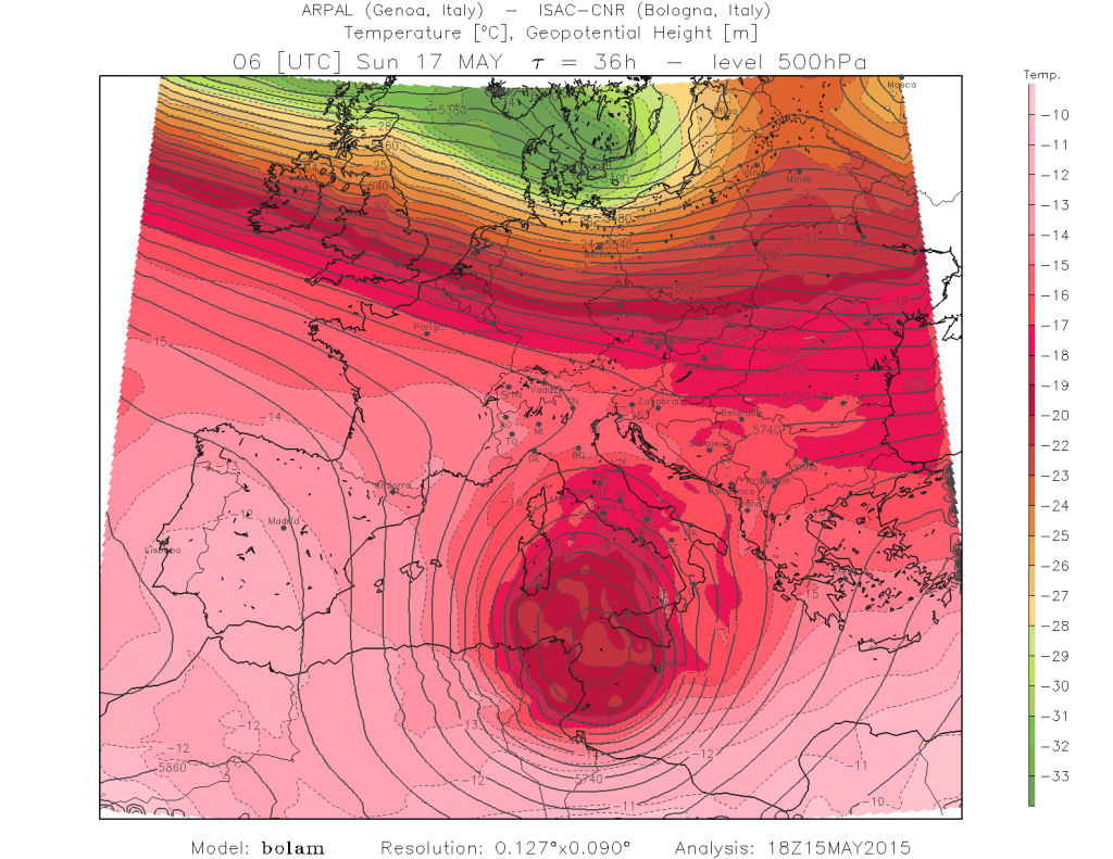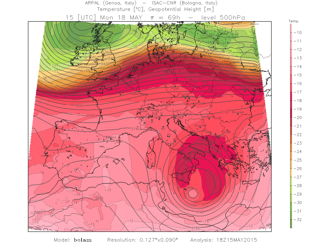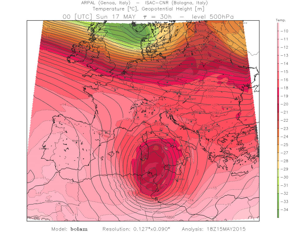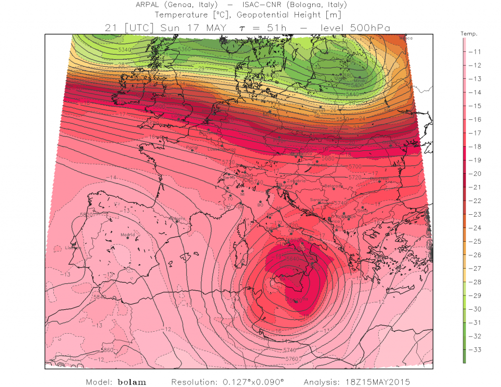 Saranno dapprima la Sicilia, tra stasera e domani, poi la Calabria nella giornata di lunedì 18 maggio, le Regioni più colpite dal maltempo che dopo i fenomeni estremi di ieri, adesso si sta spostando verso il Sud. Il ciclone associato ad una goccia fredda si trova sulla Sardegna, dove sono in atto piogge sparse e le temperature si mantengono decisamente basse dopo le minime fredde di stamattina. Cagliari non supera i +19°C, massima di +18°C invece a Oristano, addirittura Sassari è ferma a +17°C nelle ore più calde della giornata. Il maltempo non è particolarmente violento, ma i fenomeni si intensificheranno nelle prossime ore arrivando in Sicilia, dove ieri le temperature hanno raggiunto picchi diffusi di +37°C sulla fascia tirrenica.