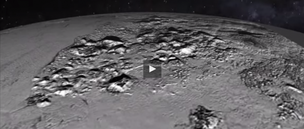 Il video del sorvolo delle aree note soprannominate “Norgay Montes” (Montagne di Norgay) e “Sputnik Planum” (Pianura di Sputnik) è stato creato grazie alle immagini del massimo avvicinamento a Plutone della sonda NASA New Horizons, ottenute dal Long Range Reconnaissance Imager (LORRI) il 14 luglio, da una distanza di 77.000 km dalla superficie del pianeta nano.