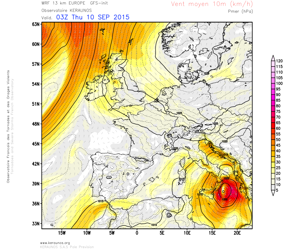 Al contrario di quanto ipotizzato in precedenza, la giornata di maltempo più estremo sarà quella di mercoledì 9 almeno in termini di precipitazioni. Il ciclone si approfondirà nel Canale di Sicilia risalendo verso il mar Jonio nel corso della giornata, provocando piogge torrenziali e violenti temporali su tutta la Sicilia in estensione sulla Calabria, specie meridionali. Le precipitazioni dovrebbero colpire gran parte del territorio siciliano, ma in prevalenza i settori orientali e nord/occidentali, le aree più esposte ai venti di levante. Attenzione ai forti temporali da cui potranno scaturire intense grandinate e anche delle trombe d’aria.