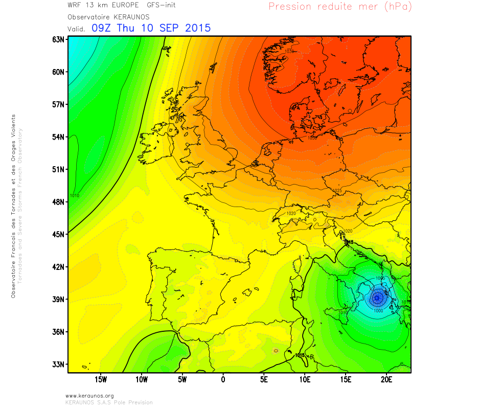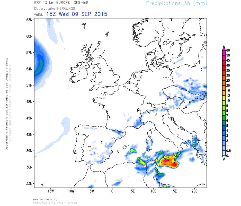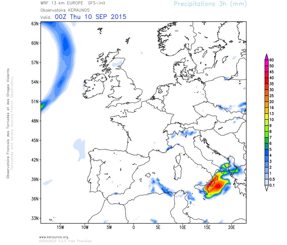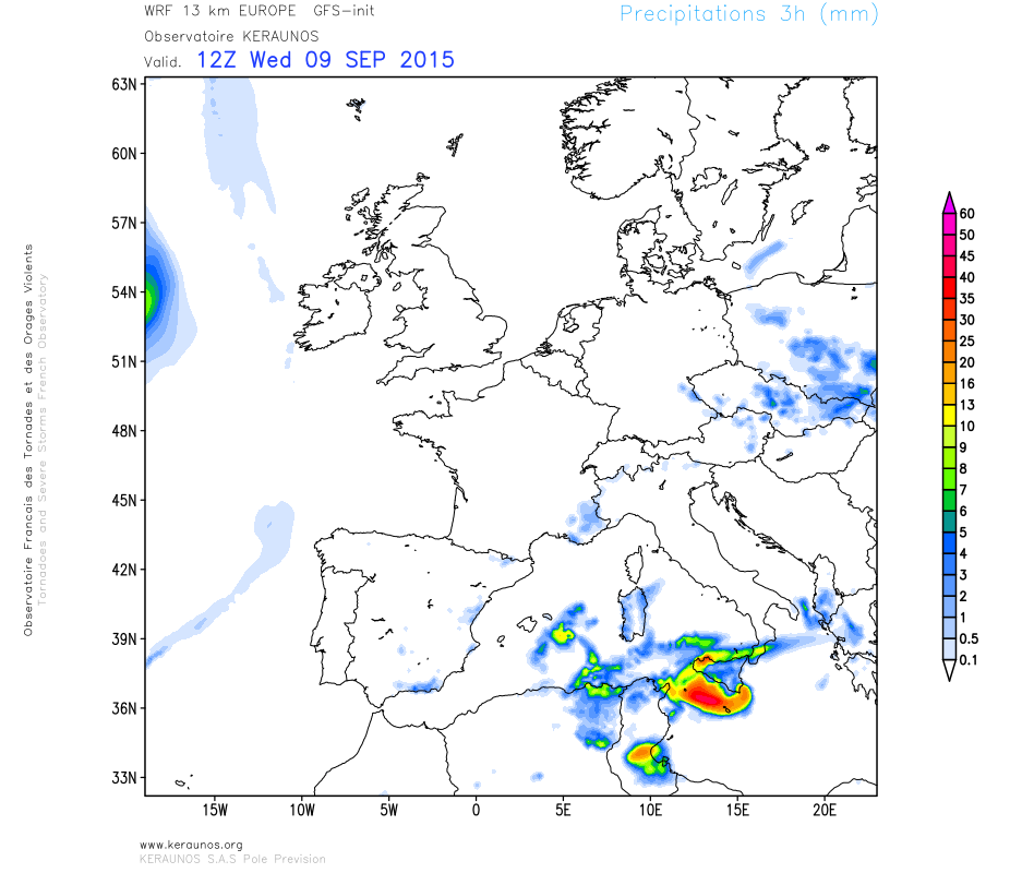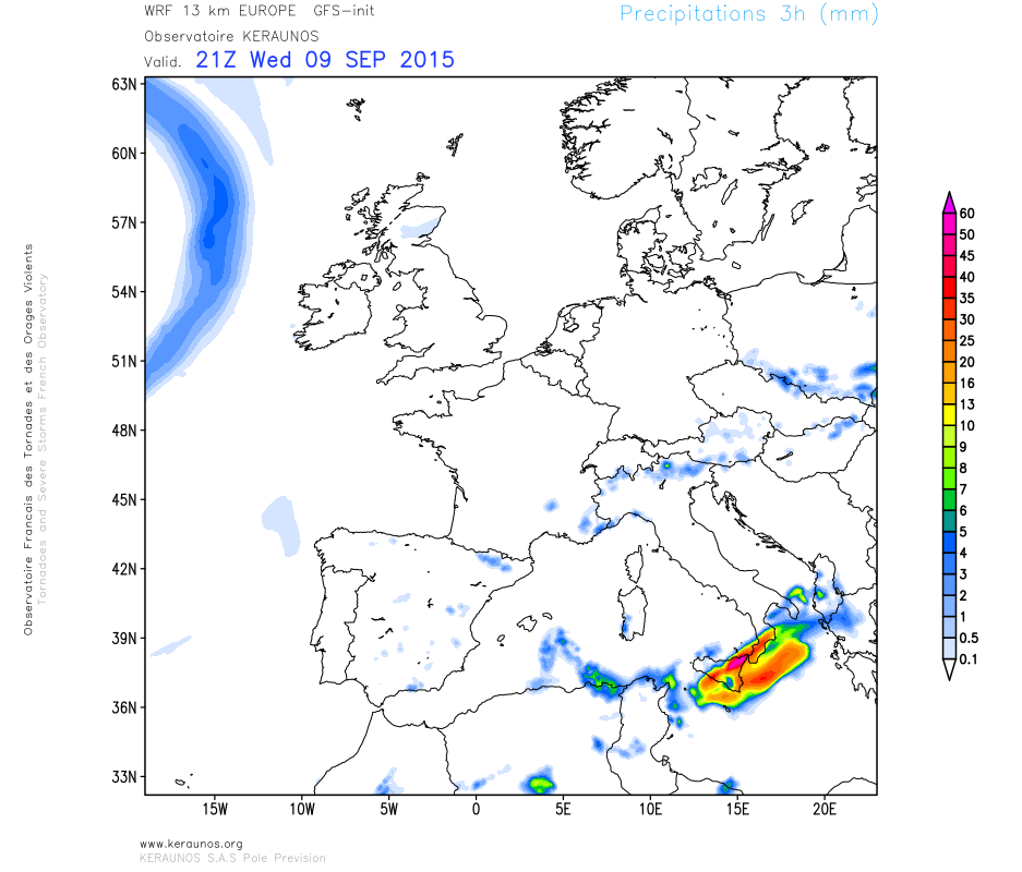 Il maltempo inizierà a fare sul serio nel pomeriggio/sera di martedì 8 settembre, con le prime forti piogge in Sardegna, Sicilia e Calabria meridionale. Le correnti inizieranno a disporsi al suolo dai quadranti orientali, quindi le precipitazioni saranno più intense nelle zone joniche della Sicilia. Nella serata di martedì 8 il maltempo diventerà particolarmente violento con nubifragi in tutta la Sicilia. Nella notte successiva i fenomeni si intensificheranno ulteriormente mentre il ciclone inizierà la sua risalita nel Canale di Sicilia passando su Malta e portandosi poi nella giornata di mercoledì 9 fin nel mar Jonio.