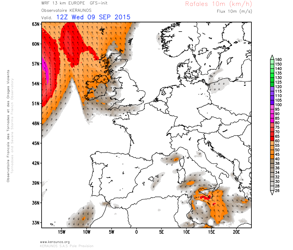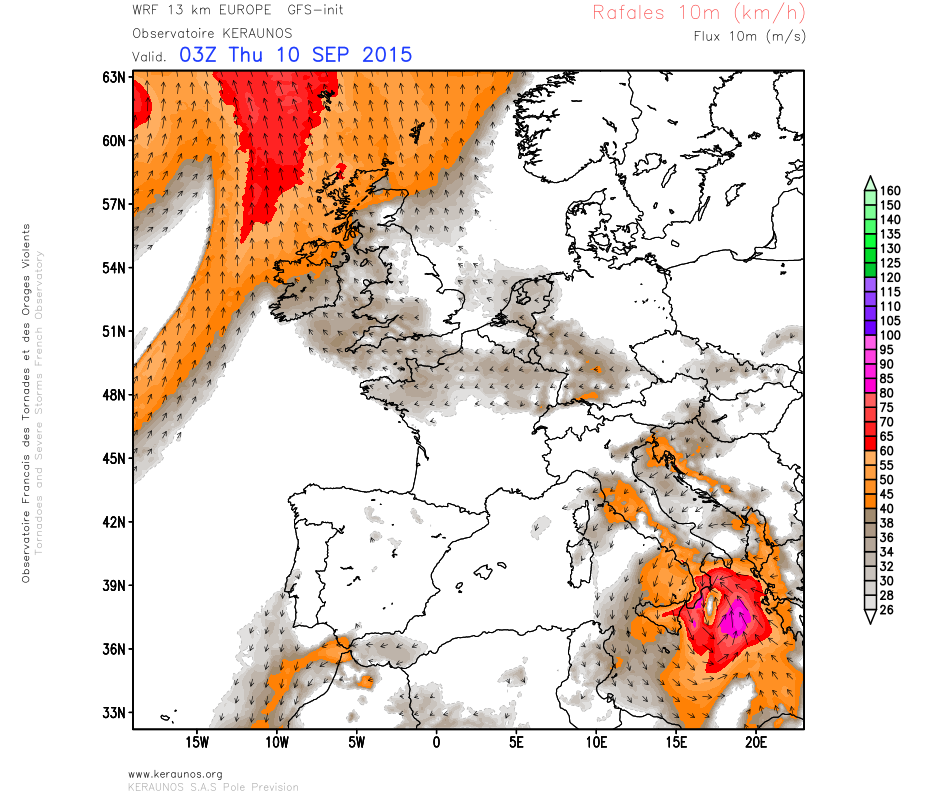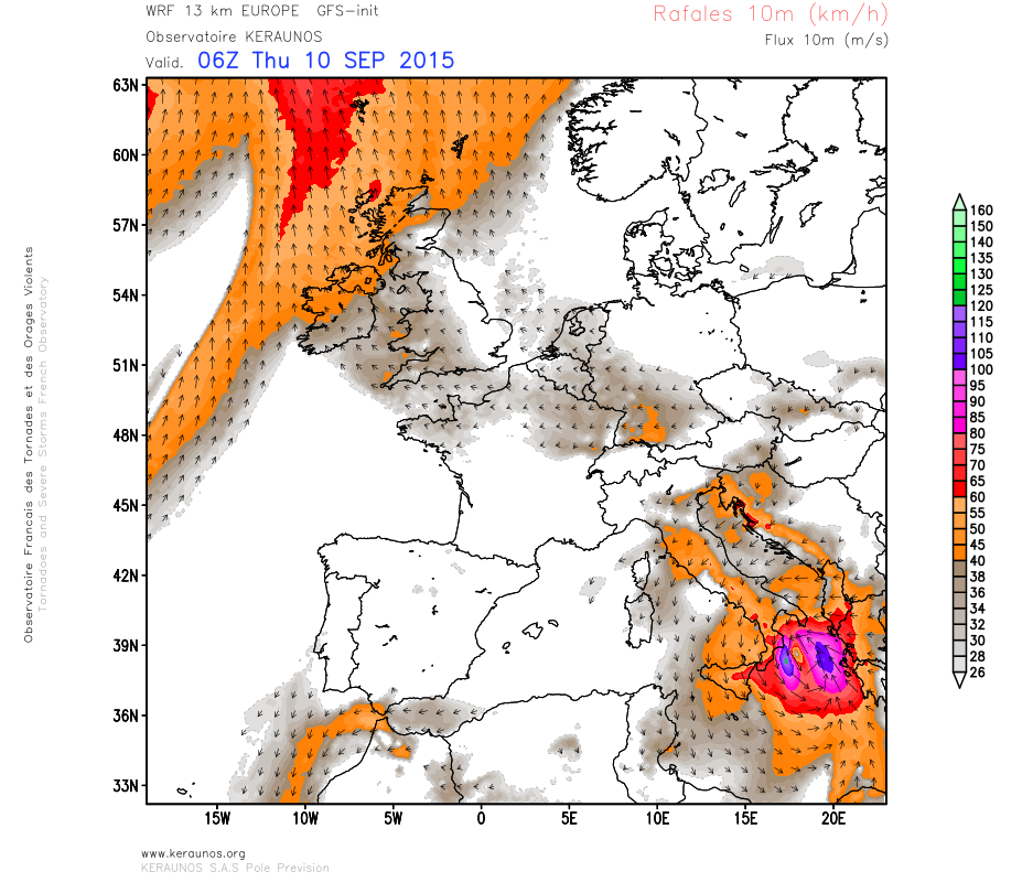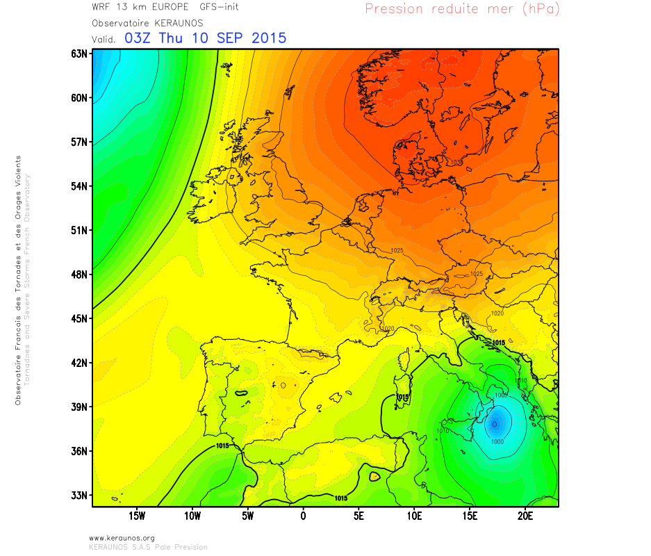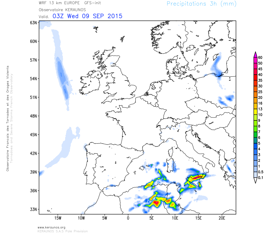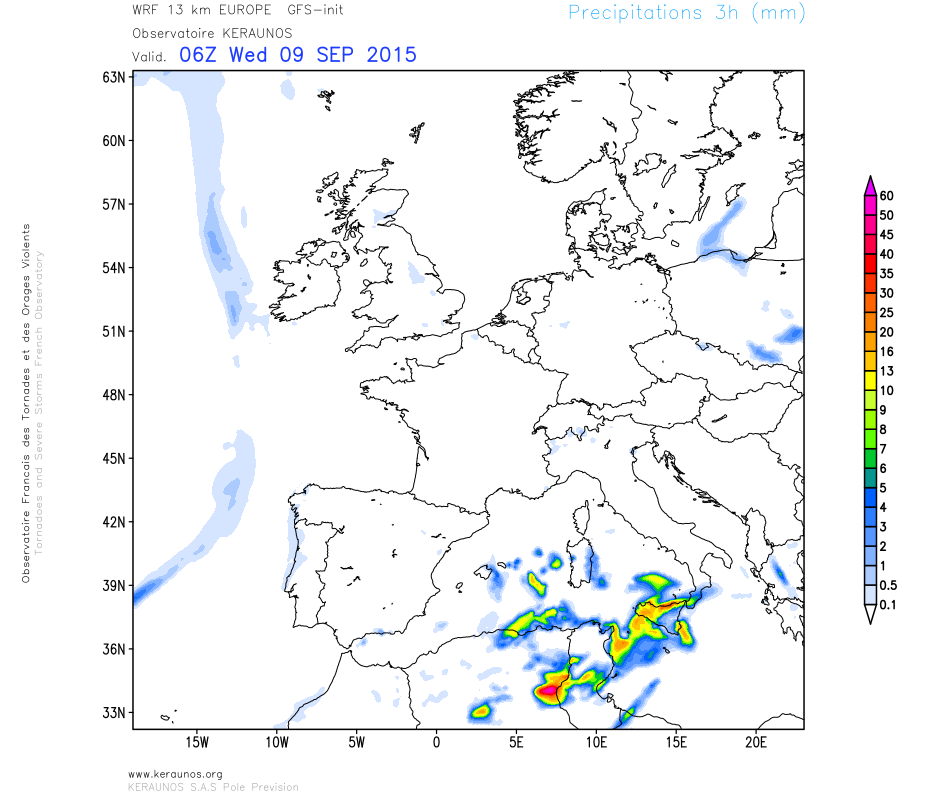 Il maltempo inizierà a fare sul serio nel pomeriggio/sera di martedì 8 settembre, con le prime forti piogge in Sardegna, Sicilia e Calabria meridionale. Le correnti inizieranno a disporsi al suolo dai quadranti orientali, quindi le precipitazioni saranno più intense nelle zone joniche della Sicilia. Nella serata di martedì 8 il maltempo diventerà particolarmente violento con nubifragi in tutta la Sicilia. Nella notte successiva i fenomeni si intensificheranno ulteriormente mentre il ciclone inizierà la sua risalita nel Canale di Sicilia passando su Malta e portandosi poi nella giornata di mercoledì 9 fin nel mar Jonio.