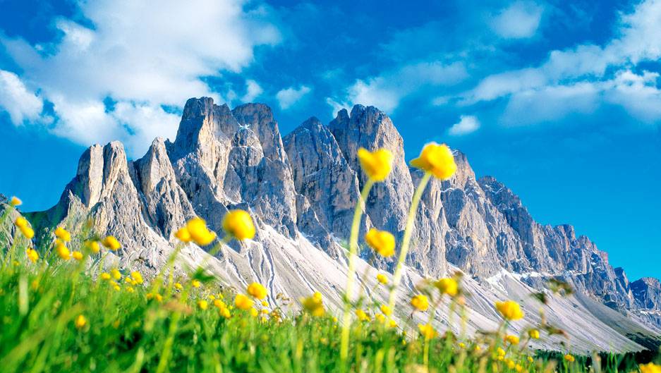 Le Dolomiti in primavera diventano ancora più affascinanti: le aguzze cime rimangono sempre innevate ma sono contornate da pascoli di un vivido verde che scuotono l’eterea tranquillità del posto.
