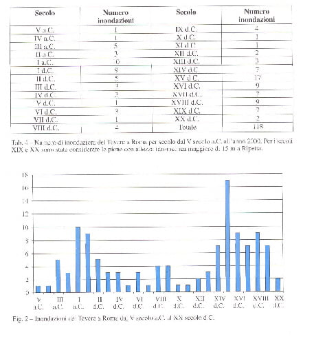 Proprio Roma è una delle città con un più grande archivio meteo/climatico, vista la sua storia millenaria: esistono tutti i dati sul livello del Tevere e sulle sue esondazioni (vedi grafico a sinistra), e nel ventesimo secolo sono notevolmente diminuiti questi fenomeni così estremi, che hanno avuto il loro picco nel corso del ‘500 (ma non si è scherzato neanche nei primi due secoli d.C., che sono al secondo e al terzo posto di sempre, appunto, dopo il 1500).