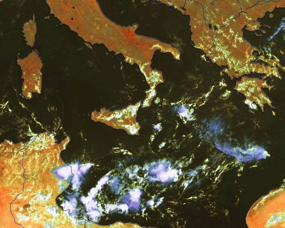 Negli ultimi aggiornamenti delle mappe di satelliti e fulminazioni, possiamo osservare molto bene il pullulare delle nubi temporalesche nel Mediterraneo centrale, sulle acque tra Sicilia, Tunisia e Libia. Anche sulle isole Pelagie sono in atto dei fenomeni temporaleschi.