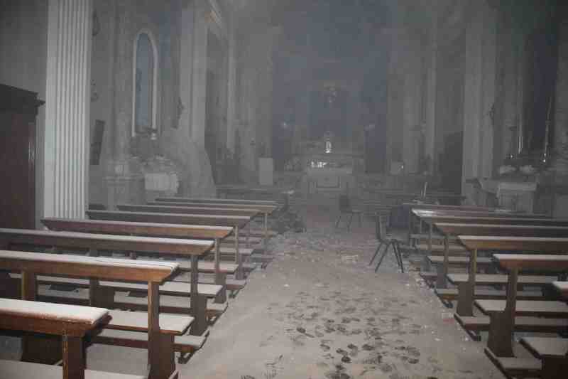 Appena visto coi miei occhi cos’era successo alla chiesa di san Martino (grazie alla telefonata di una coppia di parrocchiani) e verificato che le persone in chiesa non avevano subito danni se non tanta paura, ho chiamato i Vigili del Fuoco: erano le 16.08 (ora desunta dal cellulare). A loro ho comunicato l’accaduto, precisando che se vi erano interventi più urgenti, la chiesa poteva aspettare. Immediatamente dopo ho dato la notizia a mons. vescovo.