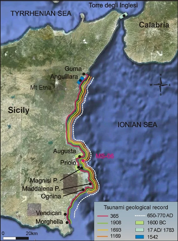 Considerando proprio quest’ultimo argomento, esiste un “tempo di ritorno” per gli tsunami? La baia di Augusta è ancora a rischio?