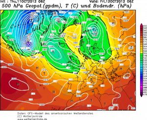 Domani piogge diffuse insisteranno nelle medesime zone, con temporali localmente forti, e con l’avanzamento del flusso perturbato, anche le regioni centro meridionali, specie del versante tirrenico, (Lazio, Campania, Basilicata, Calabria e nord Sicilia) saranno interessati da tali fenomeni. Un timido miglioramento è atteso dal tardo pomeriggio specie sulle regioni del nord e quelle centrali, residue precipitazioni insisteranno invece al meridione fino alla giornata di sabato 13 ottobre, dove ritroveremo ancora piogge locali su: Lazio, Campania, Calabria, Sicilia, Basilicata, Molise e regioni dell’alto e medio adriatico. Le temperature come già detto subiranno una generale diminuzione e si porteranno su valori tipici per il periodo.