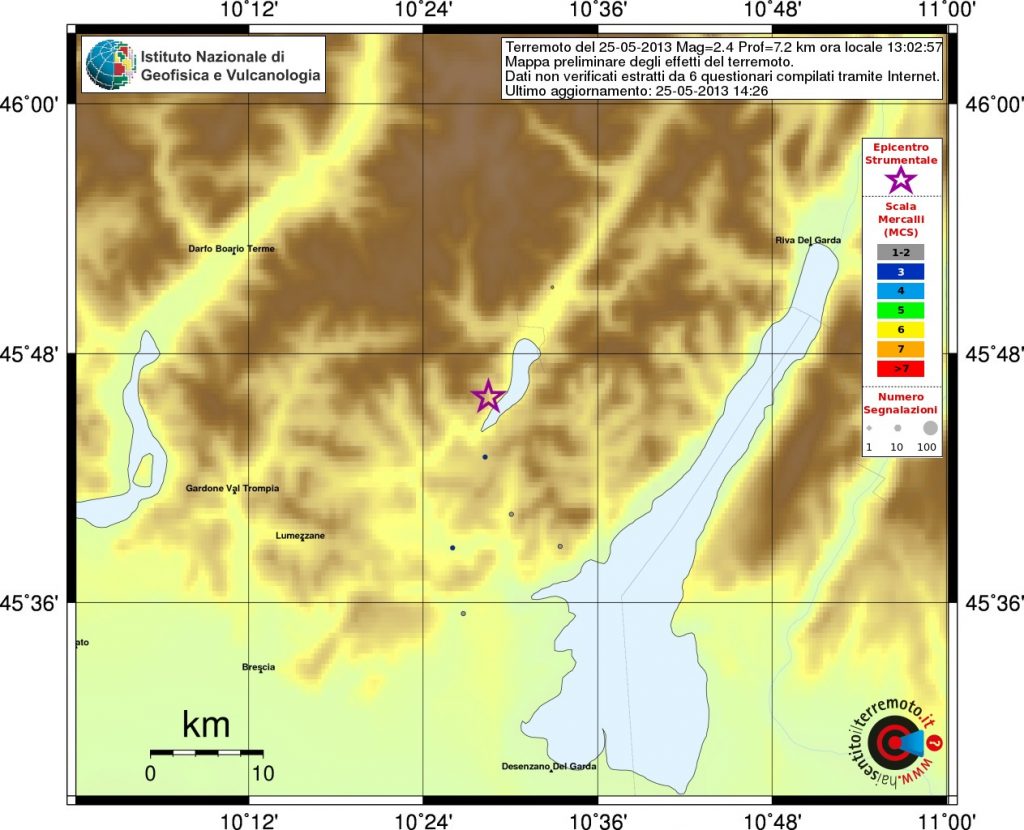 Scossa di terremoto di magnitudo 2.4 avvertita intorno al lago di Garda