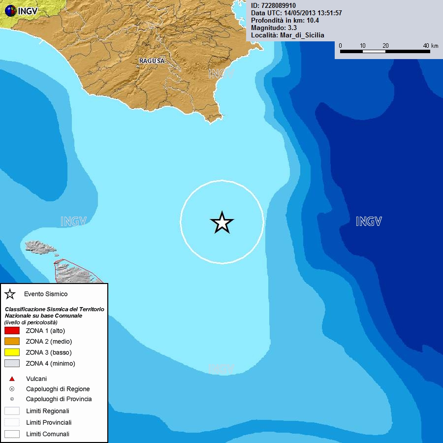 Pochi minuti fa, esattamente alle 15:51, una scossa di terremoto di magnitudo 3.3 a 10,4km di profondità ha interessato il Canale di Sicilia, con epicentro in mare aperto, esattamente a metà strada tra Malta e la Sicilia sud/orientale.