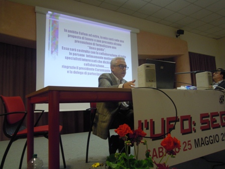 I relatori del C.UFO.M. (Centro Ufologico Mediterrane) hanno fatto decisamente bella figura al convegno internazionale di ufologia “Ufo segnali dal cosmo” svoltosi a S.M. Maddalena (Rovigo) e giunto alla sua XII edizione. Un alternarsi di ufologi molto preparati ciascuno nella sua specializzazione, che il prof. Sebastiano Di Gennaro, organizzatore dell’USAC ha orchestrato veramente con precisione svizzera, perché tutto si è svolto senza un solo contrattempo. Diversi gli interventi: da Pinotti, a Tambellini,da Galante a Challenger e Spedicato ed altri ancora. Il vicepresidente C.UFO.M. Nino Capobianco ha relazionato sull’Impatto Psicologico che un eventuale contatto con gli alieni avrebbe sull’umanità e sull’uomo in quanto singolo individuo: ha mostrato come le sfaccettature di un simile incontro siano davvero molteplici e non esaustive. Il presidente onorario del team mediterraneo, ing. Piccaluga, ha aperto i lavori di Domenica 26 illustrando le sue teorie in merito alla possibilità di “Intelligent Life On Mars”, teorie che, supportate da molte evidenze, continuano ad esercitare un grande fascino e a generare attenzione fra gli astanti. Contenti al C.UFO.M., il cui Presidente Angelo Carannante auspica una collaborazione con altre realtà ufologiche tenendo tuttavia ben presente l’indipendenza di nuove realtà rispetto a quelle storiche. Sul sito del Centro Ufologico Mediterraneo www.centroufologicomediterraneo.it è possibile leggere un servizio sul convengo di Rovigo e guardare delle immagini.