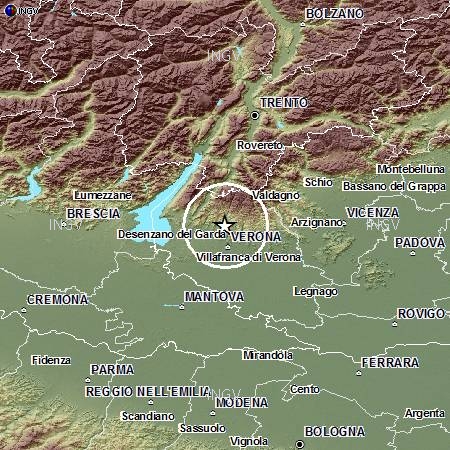 Una scossa di terremoto di magnitudo 3.0 è stata avvertita a Verona alle ore 22:25.
