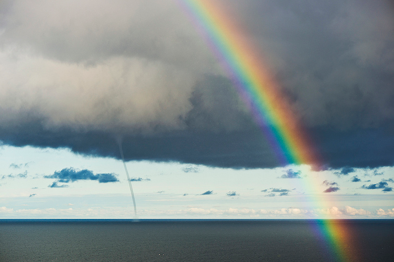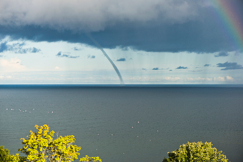 Due giorni fa, nel pomeriggio di mercoledì 14 agosto, praticamente in contemporanea rispetto al gigantesco tornado che ha colpito la Sicilia, una spettacolare e rarissima Waterspout ha interessato la Svezia meridionale, nel mar Baltico, al largo dell’isola di Gotland, dove questi fenomeni sono estremamente rari. Il Meteorologo Emil Björk (SMHI) ha affermato di non aver mai visto prima eventi simili in questa zona. Una stazione meteorologica vicina alla tromba marina ha registrato raffiche fino a 110km/h. Ecco le immagini: