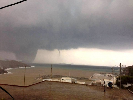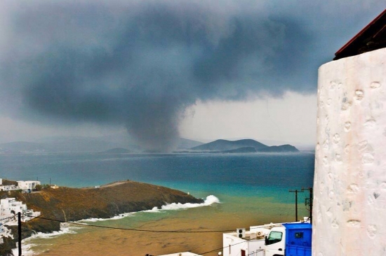 Qualche giorno fa, quando un’area di alta pressione si è trasformata repentinamente in un’area di bassa pressione nel sud del Mediterraneo, intense e numerose tempeste si sono abbattute sulla Grecia e sull’Egeo. A quanto pare, la suddetta situazione ha generato un tornado sul Mar Egeo: di fronte a questo si è formato anche un waterspout.