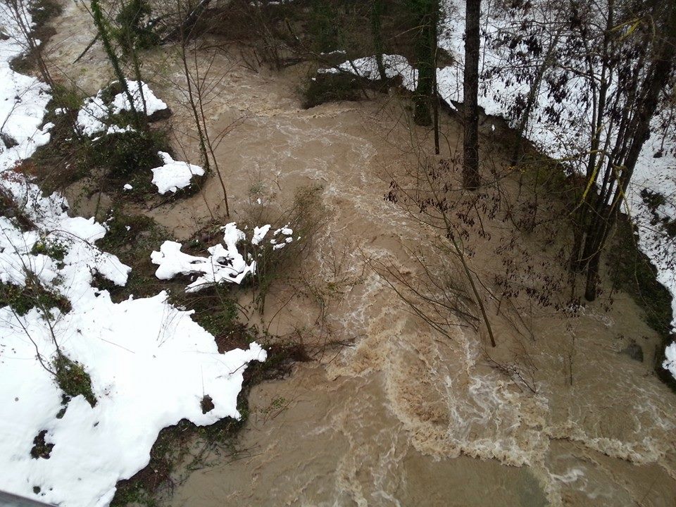 Dalla “bomba di neve” (qui le foto) all’alluvione il passo è breve, soprattutto se il freddo arriva in modo prematuro a novembre e poi dicembre inizia con un ‘Super-Ciclone’ come quello che da tre giorni sta sferzando il centro/sud Italia. La situazione è critica in Abruzzo, soprattutto nelle zone interne, per frane e smottamenti. A Valle Castellana, un paese a 620 metri di altitudine in provincia di Teramo, la situazione è critica. “Siamo in ginocchio. Completamente isolati. Chiediamo aiuto” scrive su facebook Domenico Marinelli. Nel centro del teramano erano caduti 90cm di neve la scorsa settimana, adesso piogge torrenziali e frane ovunque. Già prima della “bomba di neve”, nelle prime due settimane di novembre la zona era stata interessata da piogge alluvionali con frane e smottamenti.