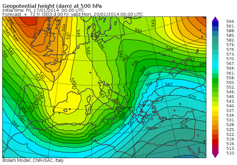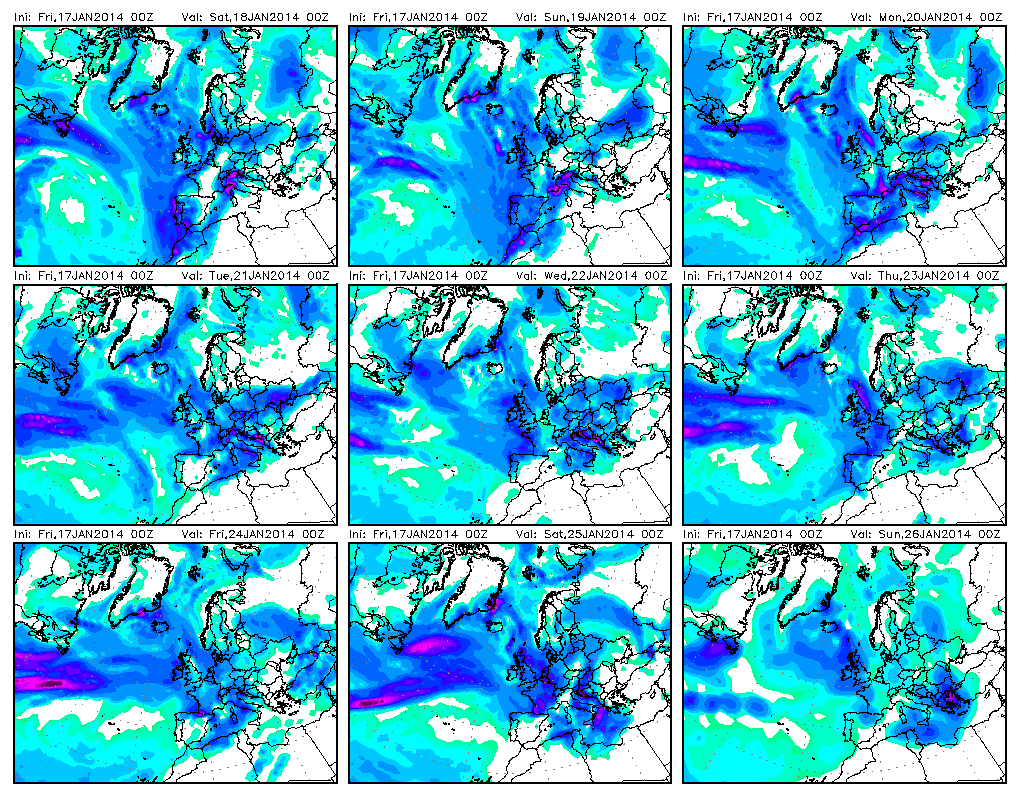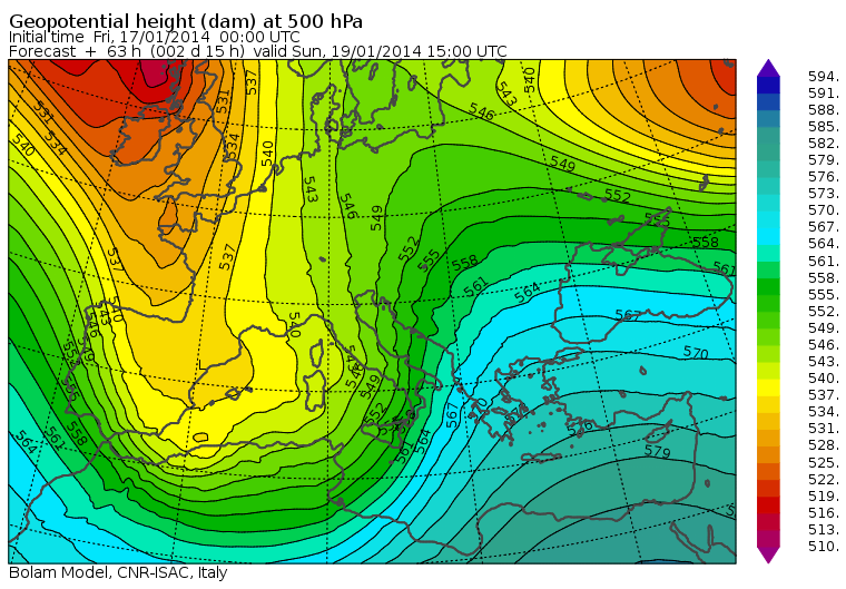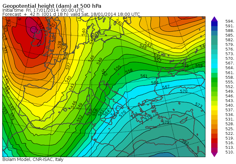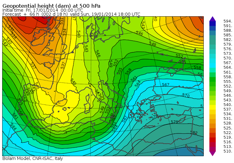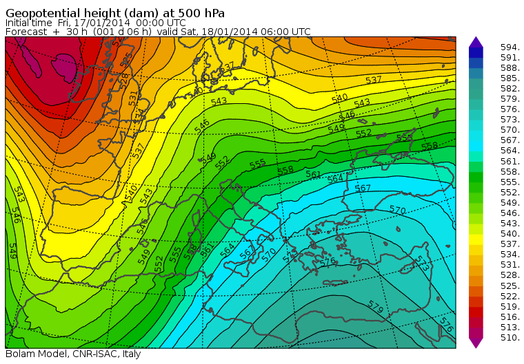 La profonda saccatura nord atlantica attiva sul comparto occidentale europeo è ancora in fase di approfondimento e raggiungerà la piena maturità nel corso del week end, quando il jet streaks (le raffiche massime della corrente a getto che accompagnano l’onda di Rossby) si troverà in corrispondenza del cavo d’onda (nel gomito della saccatura). Nel corso del week end inoltre, trovandoci ancora ad est dell’asse, sull’Italia, specie centro meridionale, verrà richiamata un imponente massa di aria calda e secca accompagnata da elevate concentrazioni di silt in atmosfera a causa del profondo affondo del getto polare fino al deserto sahariano. Aria che perderà la sua componente igrometrica originaria durante l’attraversamento dei mari italiani.