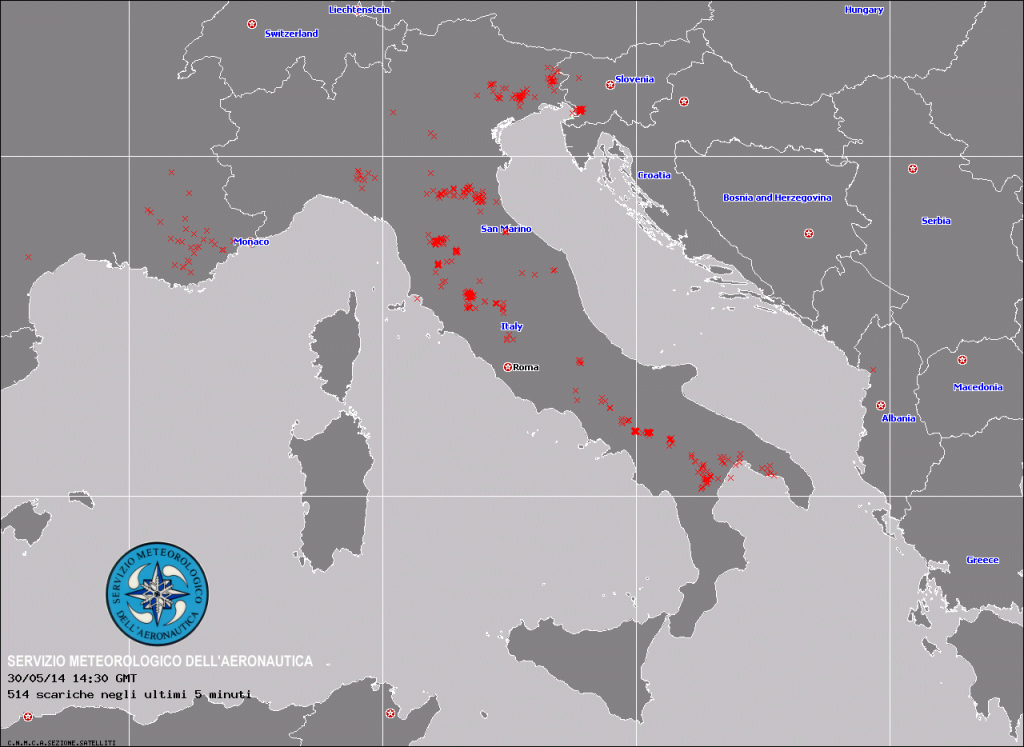 Come ampiamente previsto nei precedenti aggiornamenti meteo, l’Italia oggi pomeriggio è letteralmente “bombardata” da centinaia di celle temporalesche nate nelle ore centrali della giornata lungo tutta la dorsale appenninica e in molte aree del nord. Eloquenti, a tal proposito, le mappe che pubblichiamo a corredo dell’articolo.