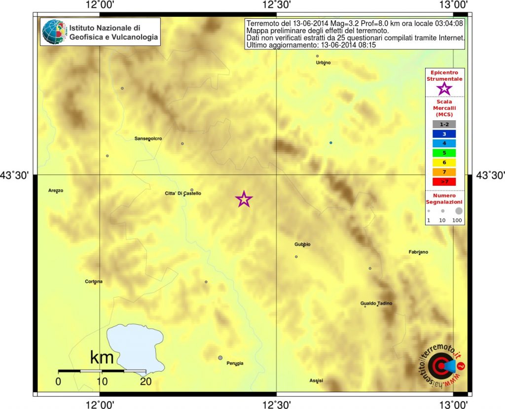 Grazie al prezioso lavoro di Giovanni Falcicchia, pubblichiamo la scheda con gli effetti macrosismici del terremoto magnitudo 3.2 verificatosi tra Perugia e Pesaro, con epicentro nel Distretto Sismico: Alta val Tiberina.