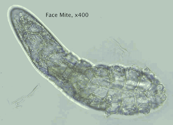 Si chiamano Demodex e si tratta di una specie parassita che presenta un corpo vermiforme, costituito da una parte anteriore rostrata ed una posteriore cilindrica fornita di otto piccoli arti: vive nella sostanza adiposa delle ghiandole sebacee e dei follicoli piliferi della maggior parte dei mammiferi. Se presenti in gran numero, possono portare a malattie della cute
