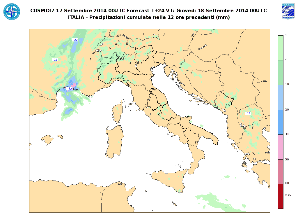 SABATO 20 Al Nord e sulla Toscana precipitazioni da sparse a diffuse; tuttavia su Liguria ed alta Toscana e Lombardia i fenomeni risulteranno persistenti e localmente temporaleschi di moderata forte intensita’. Su Marche, Umbria e settori settentrionali del Lazio nubi medio-alte con possibilita’ di fenomeni occasionali; sulle restanti aree del Centro-Sud sereno o poco nuvoloso. Temperature ancora elevate al Centro-Sud per effetto di una sostenuta ventilazione sciroccale e moto ondoso dei mari piu’ accentuato sui bacini occidentali e meridionali. DOMENICA 21 Al Nord e su Toscana, Umbria e Marche precipitazioni sparse; tuttavia su settori di Nord-Est i fenomeni potranno essere localmente temporaleschi. Ampie aperture a Nord-Ovest nella seconda parte della giornata. Sulle restanti aree del Centro-Sud sereno o poco nuvoloso. LUNEDI’ 22/MARTEDI’ 23 Al Nord e su Sardegna, Toscana, Umbria e Marche precipitazioni sparse. Tuttavia sui settori di Nord-Ovest i fenomeni potranno essere diffusi e localmente temporaleschi, di moderata intensita’. Ampie aperture sulle restanti aree del Centro con possibilita’ di occasionali fenomeni su Lazio e Abruzzo. al Sud sereno o poco nuvoloso.