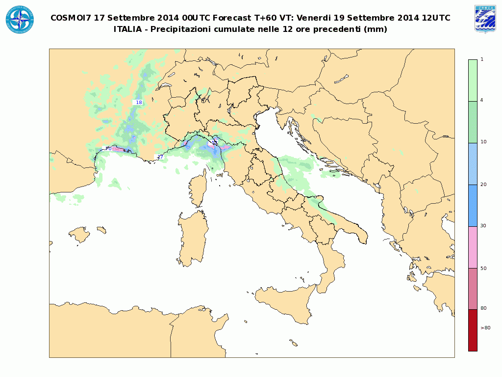 Il servizio meteorologico dell’Aeronautica militare comunica le previsioni del tempo sull’Italia per i prossimi giorni. VENERDI’ 19 SETTEMBRE Nord: sulla Liguria nuvolosita’ estesa sin dal primo mattino con possibilita’ di precipitazioni diffuse che potranno essere temporalesche e di moderata forte intensita’ specie in prossimita’ delle coste. Sulle restanti aree del Nord nuvolosita’ diffusa con possibilita’ di precipitazioni sparse su Lombardia, settori prealpini ed alpini e Veneto; sulle restanti aree del Nord scarsa possibilita’ di deboli ed occasionali fenomeni. Centro e Sardegna: sulla Toscana nuvolosita’ estesa sin dal primo mattino con possibilita’ di precipitazioni sui settori piu’ settentrionali ove tuttavia i fenomeni potranno essere temporaleschi e di moderata forte intensita’ specie in prossimita’ dei rilievi e sulle coste della Versilia; sulle restanti aree della Toscana i fenomeni risulteranno meno probabili. Sulla Sardegna e sulla restanti aree del Centro al mattino generalmente poco nuvoloso con velature sui settori adriatici; tendenza nel corso della giornata a rasserenamenti sui settori adriatici ed aumento di nubi medio alte su Sardegna e settori tirrenici ma senza fenomeni associati. Sud e Sicilia: generalmente sereno o poco nuvoloso. Temperature: in generale aumento sia le massime che le minime al Centro-Sud, in specie le massime sulle isole maggiori. Al Nord in leggero calo le minime e le massime su Liguria. Venti: deboli moderati meridionali sul Centro-Sud; orientali sulla Pianura Padana da Nord sulla Liguria; deboli variabili altrove. Mari: poco mossi, tendenti a mossi l’Adriatico e lo Jonio; molto mossi i restanti bacini; localmente agitato il Tirreno centrale.