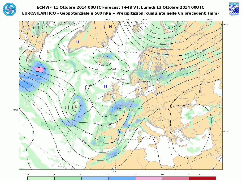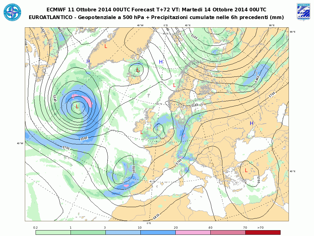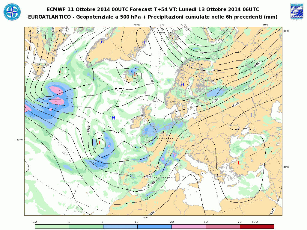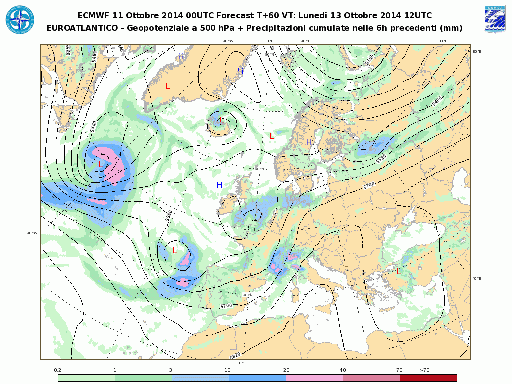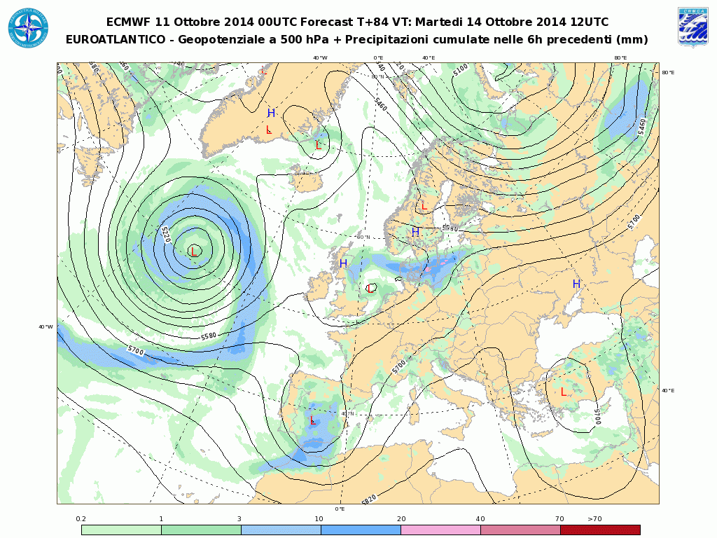 Il Servizio meteorologico dell’Aeronautica Militare comunica le previsioni del tempo sull’Italia per i prossimi giorni. Lunedi’ 13 ottobre Nord: condizioni decisamente perturbate sulle regioni di nord-ovest con precipitazioni anche temporalesche particolarmente intense sulla Liguria, sul Piemonte settentrionale, sulla Lombardia centro-settentrionale e localmente sull’Appennino emiliano; soltanto verso la fine della giornata si assistera’ ad una seppur debole attenuazione della fenomenologia tra Piemonte e Lombardia; nel frattempo le piogge e i temporali tenderanno ad interessare il Triveneto risultando un po’ piu’ intensi tra il Veneto centro-settentrionale e le zone alpine e prealpine centro-orientali. Centro e Sardegna: nuvolosita’ diffusa e consistente sulla Toscana con precipitazioni anche temporalesche di forte intensita’ che interesseranno dapprima il settore piu’ settentrionale e poi anche la parte centrale e costiera della regione dalle prime ore del pomeriggio fino a notte inoltrata; sul resto del centro peninsulare le nubi saranno inizialmente piu’ sparse per poi intensificarsi durante la seconda parte della giornata apportando locali piogge o rovesci sulla parte occidentale dell’Umbria e sull’alto Lazio; cielo in genere molto nuvoloso sulla Sardegna con piogge sparse sulla parte occidentale e settentrionale della regione durante le ore notturne. Sud e Sicilia: prevalenza di ampi spazi sereni sia sulle regioni peninsulari che sull’isola con tendenza a qualche nube in piu’ tra Sicilia, Campania e Puglia salentina ma senza fenomeni di rilievo associati. Temperature: minime in generale aumento; massime in lieve diminuzione su Sardegna e regioni di nord-ovest e in tenue aumento sul resto del territorio. Venti: da deboli a moderati meridionali su tutte le regioni con tendenza a rinforzare ulteriormente sulla Liguria e sull’alta Toscana. Mari: poco mossi il Tirreno meridionale settore est e lo Jonio; da poco mosso a mosso l’Adriatico; mossi o molto mossi il resto del Tirreno, il canale di Sardegna e lo stretto di Sicilia; molto mosso il mar di Sardegna; agitato il mar Ligure. Martedi’ 14 ottobre Maltempo in graduale attenuazione sulle regioni settentrionali ma con precipitazioni ancora localmente intense al mattino sulla Liguria di levante e tra Lombardia e Triveneto; sulle regioni centrali le nubi saranno piu’ compatte ancora tra Toscana, Umbria ed alto Lazio ed apporteranno piogge o temporali che tenderanno ad attenuarsi dalla tarda mattinata; qualche schiarita attesa lungo le regioni adriatiche; al meridionale la situazione risultera’ ancora abbastanza stabile ed all’insegna di ampi spazi sereni nonostante il temporaneo passaggio di nuvolosita’ comunque poco consistente. Mercoledi’ 15 ottobre Condizioni ancora instabili al settentrione con precipitazioni sparse della Liguria di levante verso il Triveneto attraverso la Lombardia e il settore occidentale dell’Emilia Romagna, ma in miglioramento durante la seconda parte della giornata; piu’ nubi al centro con piogge o rovesci che nuovamente dalla Toscana tenderanno ad interessare il resto delle regioni peninsulari durante il pomeriggio per poi attenuarsi verso la sera-notte; la nuvolosita’ tendera’ a raggiungere anche il meridione ma apportera’ locali deboli sporadici piovaschi. Giovedi’ 16 e venerdi’ 17 ottobre Piu’ nubi al centro e al sud con deboli piogge sparse che tenderanno a divenire moderate sull’alta Toscana nella giornata di venerdi’; al nord nuvolosita’ variabile alternata a schiarite ma con qualche pioggia sulla Liguria di levante in attesa di un peggioramento un po’ piu’ diffuso sempre nella giornata di venerdi’.