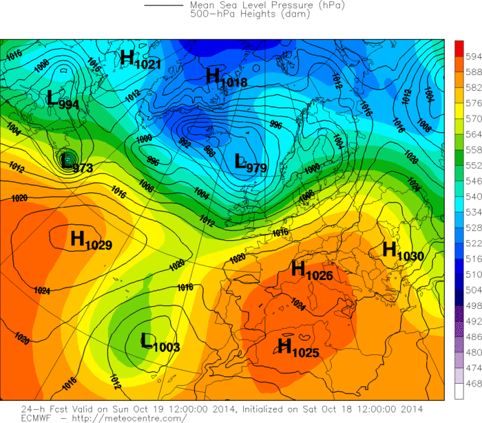 L’uragano Gonzalo continua a muoversi minacciosamente nell’oceano Atlantico verso l’Europa: ha raggiunto l’isola di Terranova, lembo più orientale del Canada, e nella serata di domani, lunedì 20 ottobre, raggiungerà l’Europa precisamente sulle isole Britanniche. Quello che succederà dopo è una grande incognita. La tempesta, seppur indebolita ma ancora molto intensa, si continuerà a muovere verso est, dividendosi in due parti: una raggiungerà la penisola Scandinava, l’altra si muoverà verso l’Italia e i Balcani.