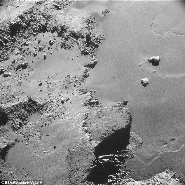 Incredibili, spettacolari nuove immagini sono state catturate dalla sonda Rosetta: le immagini mostrano la superficie della “sua” cometa 67P/Churyumov-Gerasimenko come mai prima d’ora. I dettagli sono impressionanti: possono distinguersi perfettamente bordi e polvere. Gli scatti arrivano in preparazione dell’atterraggio sulla cometa, pianificato per il 12 novembre.