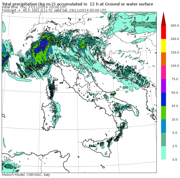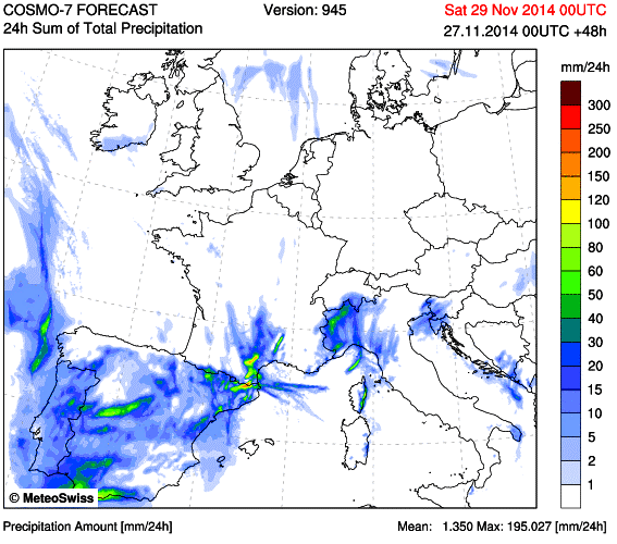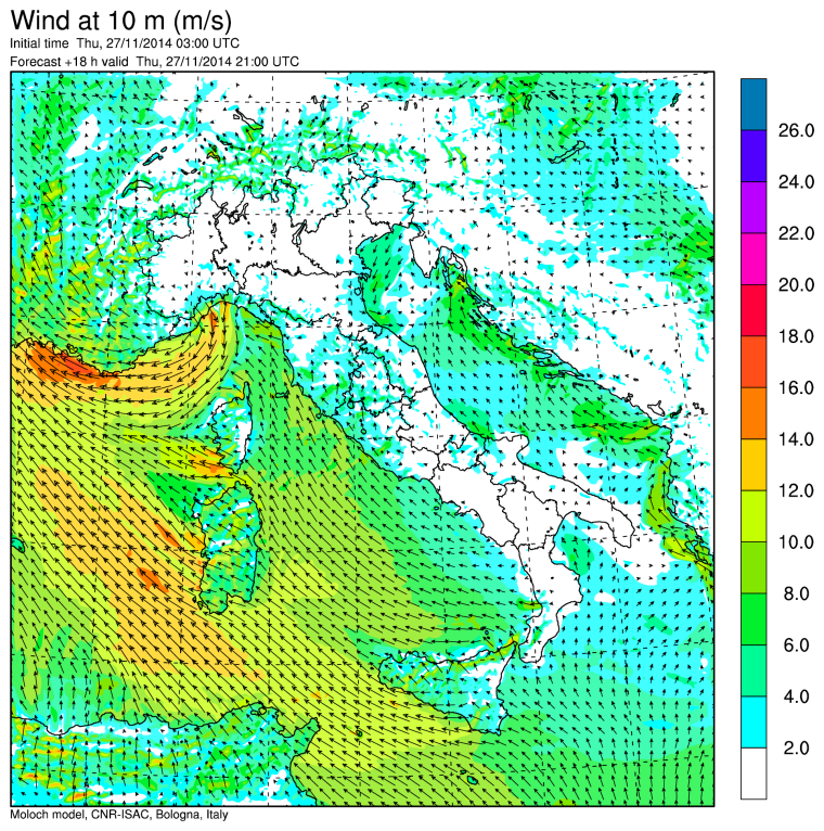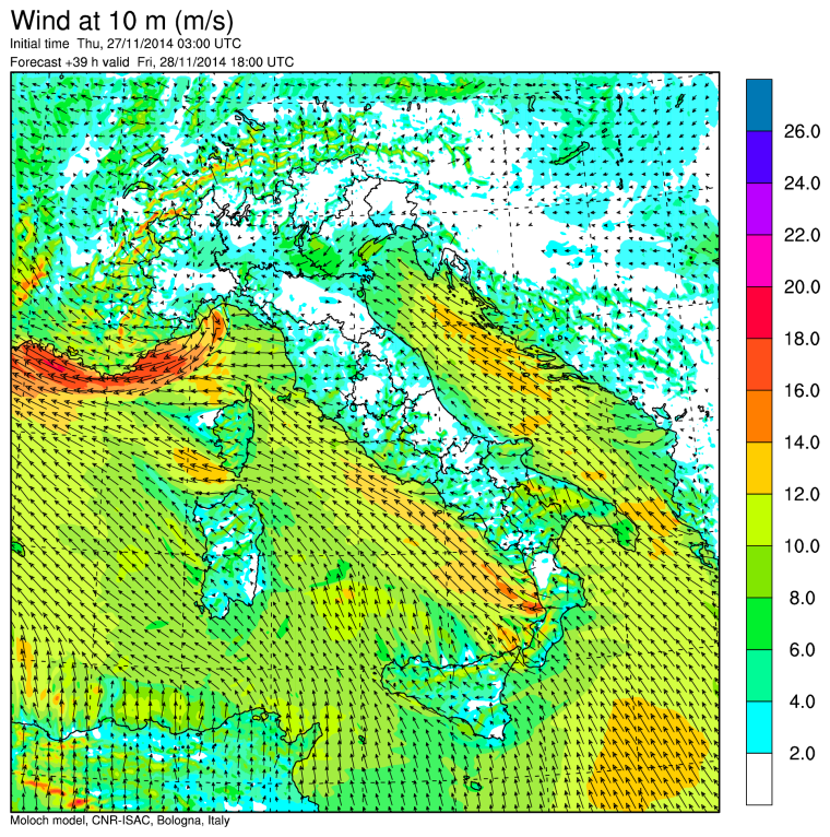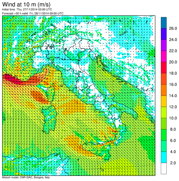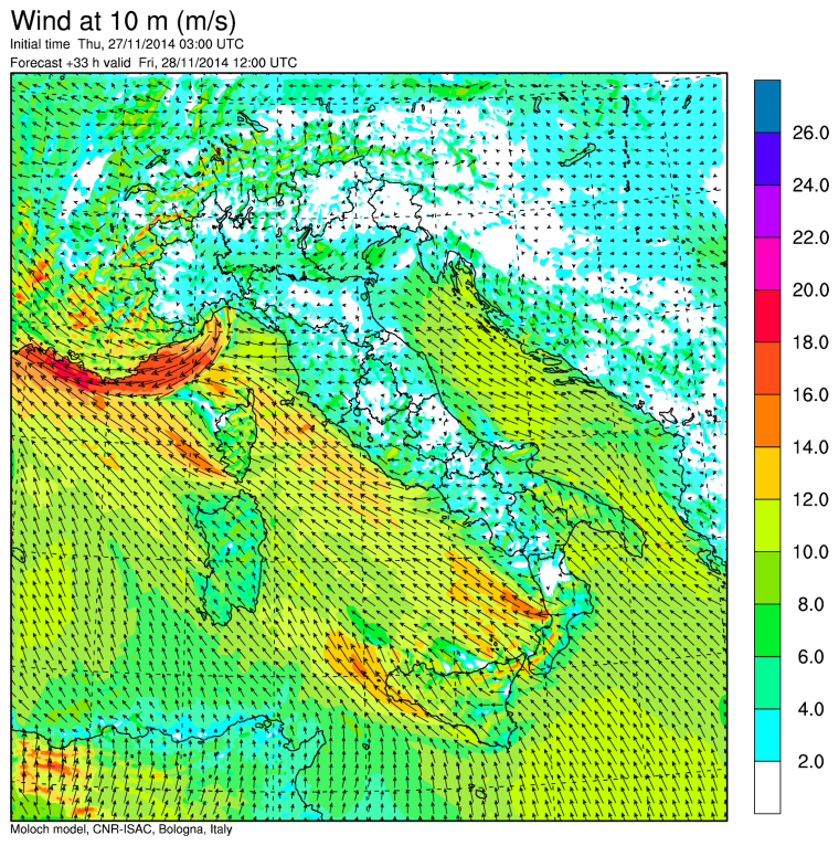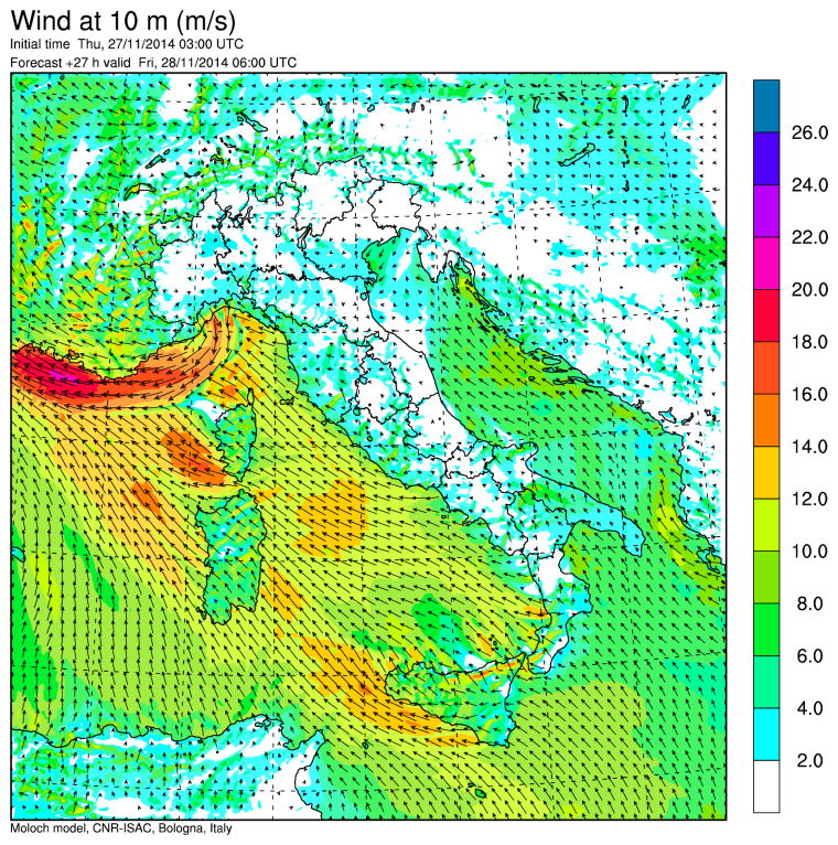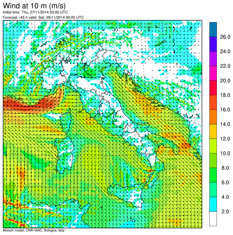 Nel Sahara si scateneranno violente tempeste di sabbia e si alzerà una lingua molto calda che porterà ingenti quantità di polvere desertica anche sull’Italia centro/meridionale tra sabato e domenica, quando le temperature lieviteranno fino ad oltre 10°C sopra le medie del periodo con picchi di +30°C domenica in Sicilia, dove potranno essere stravolti tutti i precedenti record storici di caldo del mese di novembre. Il forte vento di scirocco soffierà impetuoso su tutta l’Italia da stasera fino a domenica, come possiamo osservare nelle mappe a corredo dell’articolo. Non mancherà il maltempo, soprattutto al nord/ovest con forti temporali già da domani e poi nel weekend. Domenica il ciclone si avvicinerà moltissimo, arrivando in Sardegna e alimentando maltempo anche su gran parte d’Italia. Attenzione alle piogge alluvionali che interesseranno vaste aree del Marocco occidentale e della Spagna orientale.
