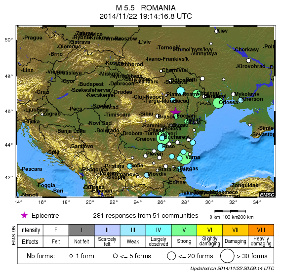 Una violenta scossa di terremoto, di magnitudo 5.5, ha colpito stasera (alle 20:14 italiane) i Balcani, con epicentro in Romania, nella zona centro/orientale del Paese, vicino al confine con la Moldova. La scossa ha colpito la zona di Vrancea, ma è stato avvertito anche nella capitale Bucarest. I media locali riferiscono che si tratta del terremoto più forte registrato quest’anno nel Paese. Al momento non si hanno notizie precise sui danni, ma le autorità locali temono che ci possano essere vittime, Il distretto di Vrancea è la zona a più alto rischio sismico della Romania: nel 1977 una scossa di magnitudo 7.2 provocò quasi 2.000 vittime.