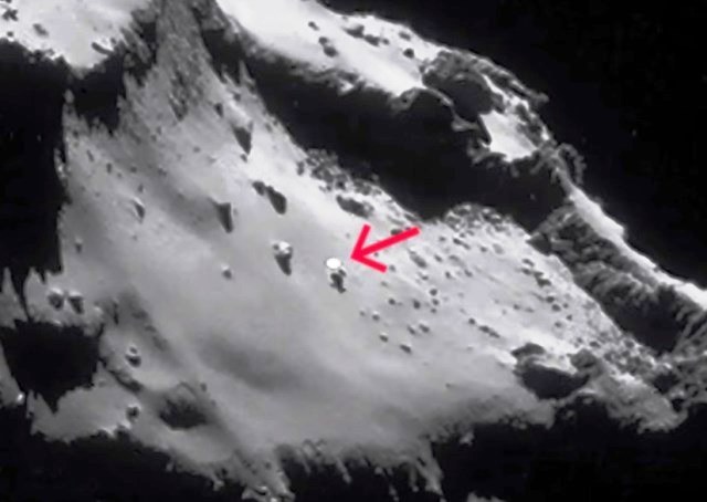 Due noti ricercatori ufo del C.UFO.M.(Centro Ufologico Mediterraneo), appena sono pervenute le prime immagini dalla sonda spaziale Rosetta relative alla cometa Churyumov-Gerasimenko, certamente non hanno perso tempo. Infatti l’ing. Ennio Piccaluga ed il dr. Angelo Carannante esponenti di spicco del citato centro ufologico, nell’analizzare le foto si sono resi conto di alcune evidenze che non appaiono naturali. Dopo analisi e riscontri vari con l’aiuto del socio collaboratore Angelo Maggioni, hanno messo online sul sito ufficiale del C.UFO.M. un lungo articolo con particolari da loro scovati che fanno riflettere su cosa possano essere. Così, hanno ingrandito ed analizzato quello che sembra un oggetto perfettamente cilindrico che, sembra fuori luogo rispetto a ciò che c’è intorno anche dal punto di vista cromatico e stranamente, la sua ombra non sembra conforme nè con l’oggetto che dovrebbe produrla, nè con le ombre circostanti. In un’altra immagine, c’è una specie di tenda dai contorni molto regolari e quasi innaturali, che si potrebbe pensare come un qualcosa di costruito da qualcuno. Nella stessa foto, risalta anche un qualcosa con una forma e superfici rettangolari che appaiono troppo levigate e regolari. Un qualcosa di reale o frutto della non eccelsa qualità delle immagini che, non dimentichiamo, provengono da milioni di chilometri di distanza? Gli studiosi in questione non affermano certamente che si tratti di cose artificiali, ma che le immagini lasciano alquanto pensare e che nessuna ipotesi va sottaciuta. Anche quelle che sembrano più estreme e che forse hanno addirittura a che fare con gli ufo.