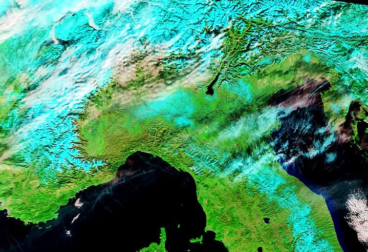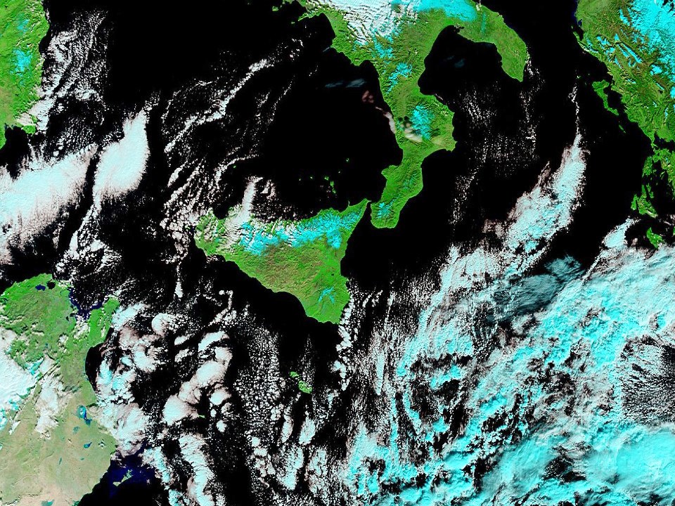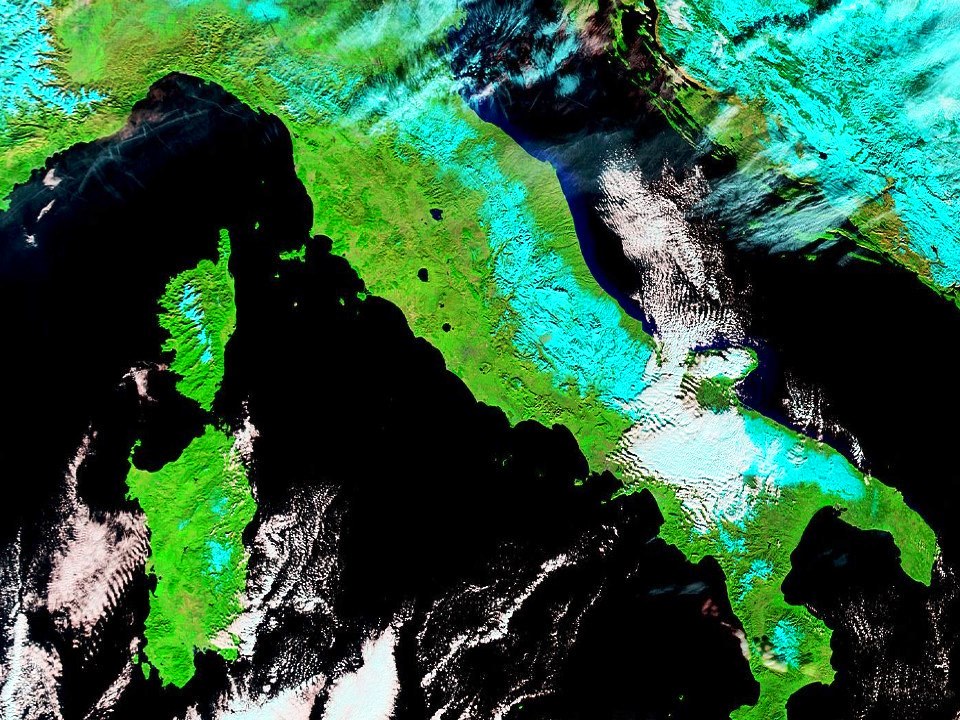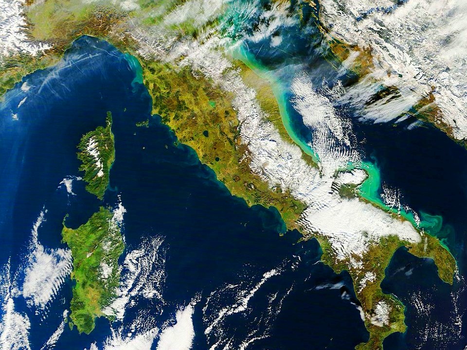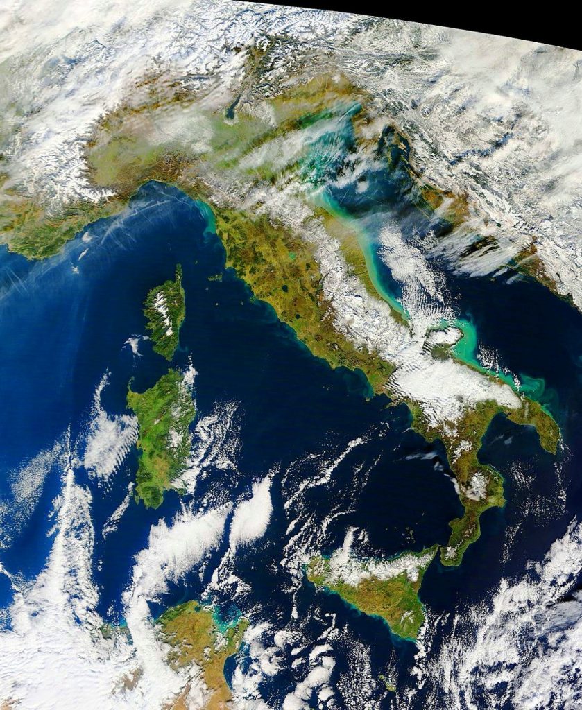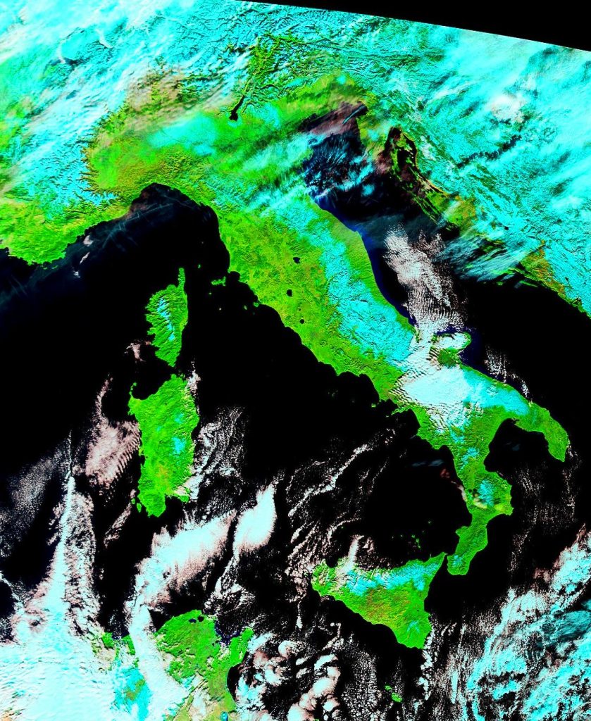 Sembrano quasi le immagini viste nel film americano “The Day After Tomorrow”: l’Italia innevata oggi si presenta così dallo Spazio, come possiamo osservare nelle immagini dei satelliti NASA scattate nella mattinata odierna e appena divulgate. Poche nubi residue, tanta neve soprattutto sulla dorsale appenninica dall’Emilia Romagna alla Puglia, ma anche all’estremo Sud in Calabria, Sicilia e Sardegna. Da notare anche come la neve persista incredibilmente in pianura Padana, dove è caduta una settimana fa eppure non s’è ancora sciolta a causa del grande freddo.