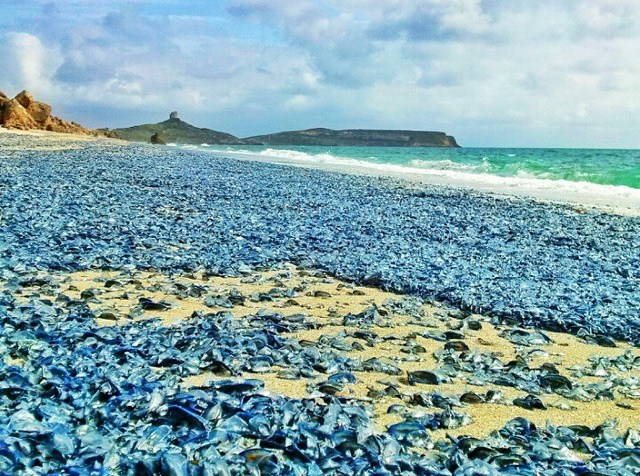 Le spiagge italiane sono nuovamente invase dalle meduse “velella velella“, che stanno tingendo di blu i litorali soprattutto in Sardegna e Calabria. Le fotografie a corredo dell’articolo arrivano proprio due dalla Sardegna, altre due da Tropea, scattate tra ieri e oggi.