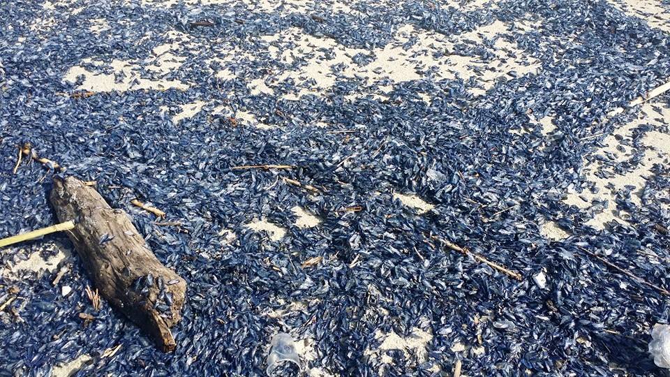 Boom di meduse velella velella spiaggiate in gran quantità in questi giorni soprattutto in Sardegna e Calabria: le foto