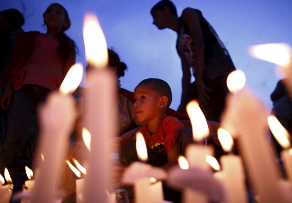 Centinaia di persone hanno partecipato a una fiaccolata a Kathmandu ad un mese esatto dal primo dei due terremoti – di magnitudo 7.8 – che colpirono il Nepal, provocando complessivamente almeno 8.700 morti, 16.800 feriti e 2 milioni di sfollati. In ricordo della vittime, e’ stata anche costituita una catena umana nel centro della capitale, intorno al luogo in cui sorgeva la storica torre di Dharahara, il cui crollo uccise una sessantina di persone. La situazione nel Paese, ad un mese dal quel terribile 25 aprile, resta comunque drammatica. L’Unicef ha reso noto che circa 70.000 bambini sotto i 5 anni hanno urgente bisogno di supporto nutrizionale. In molti distretti colpiti dal sisma 1,7 milioni di bambini necessitano di assistenza umanitaria, per la crescita di “malattie croniche” e per “gravi infezioni respiratorie causate dai detriti nelle citta’ e nei villaggi”.