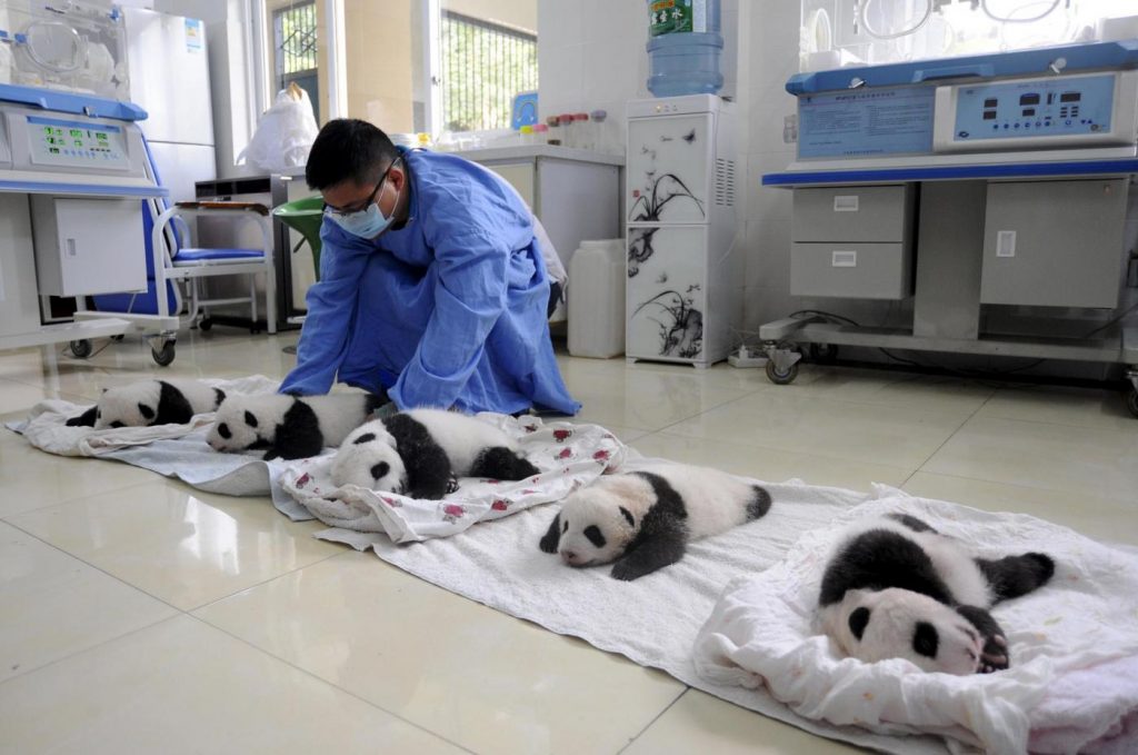Un totale di 10 cuccioli di panda gigante sono nati nel centro quest’anno, ed hanno un’età che va da una settimana a due mesi