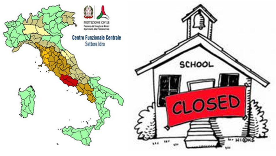 Molti Sindaci di Lazio e Toscana stanno decidendo di chiudere le scuole nella giornata di domani, mercoledì 14 ottobre, dopo l’allerta meteo emanata dalla protezione civile. Ricordiamo infatti che la decisione sulla chiusura delle scuole spetta esclusivamente al Sindaco di ogni singolo Comune, che decide in base alle previsioni della protezione civile indipendentemente dal colore dell’allerta. Infatti per domani hanno già deciso di chiudere le scuole alcuni sindaci di comuni in “criticità rossa” e altri in “criticità arancione. Di minuto in minuto, ogni notizia di chiusura delle scuole in ogni singolo comune verrà comunicata nell’elenco sottostante: