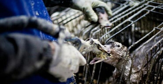 Foie Gras – Per produrre questo alimento, i volatili vengano rinchiusi in minuscole gabbie fin dalla nascita e vengano costretti ad assumere più cibo di quanto ne dovrebbero assumere in natura. I pasti che vengono somministrati alle oche consistono in grano bollito nel grasso in modo da facilitarne l’ingestione, cosa che porta alla formazioni di grandi depositi di grasso nel fegato, proprio quello che viene ricercato dalla gastronomia. Questo crea negli animali stress, depressione, problemi respiratori e di deambulazione per le abnormi dimensioni raggiunte dal fegato. Inoltre, molto spesso negli allevamenti, questi poveri animali vengono maltrattati e lasciati morire senza cure.
