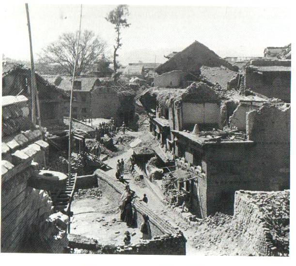 I danni maggiori si riportarono nella Valle di Kathmandu, dove molte case subirono notevoli danni strutturali. La torre Dharahara, costruita nel 1832. L’intensità dell’evento raggiunse l’XI grado della Scala Mercalli (Estremo). Difficile la stima dei morti, che comunque varia dalle 10.700 alle 12.000 vittime.