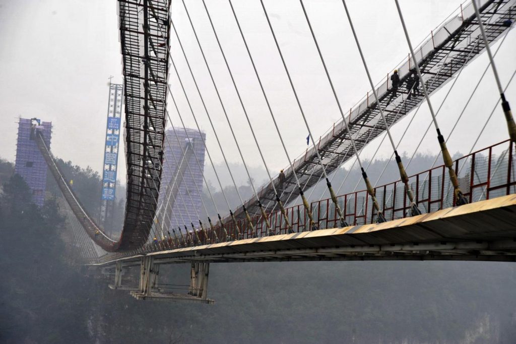 Ecco il ponte di vetro in costruzione sul Zhangjiajie Grand Canyon, a Zhangjiajie, nella provincia cinese di Hunan: è lungo 430 metri, largo 6, si trova a un’altezza di 300 metri sulla vallata e può sorreggere 800 persone contemporaneamente. La sua apertura è prevista entro il primo semestre del 2016.