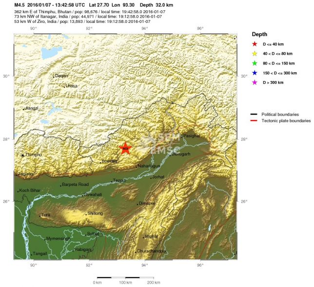 Alle 14, 42 (ora italiana) una scossa di magnitudo 4.5 è stata registrata nello stato indiano dell’Arunachal Pradesh. Secondo l’EMSC il sisma ha avuto il suo epicentro molto più a nord rispetto al terremoto di magnitudo 6.7 che ha colpito lo stato del Manipur lunedì notte, precisamente ad una distanza di 53 chilometri ad O di Ziro e 73 chilometri a NO di Itanagar. L’ipocentro della scossa è stato rilevato a 32 chilometri di profondità. Il sisma non dovrebbe aver provocato danni in superficie.