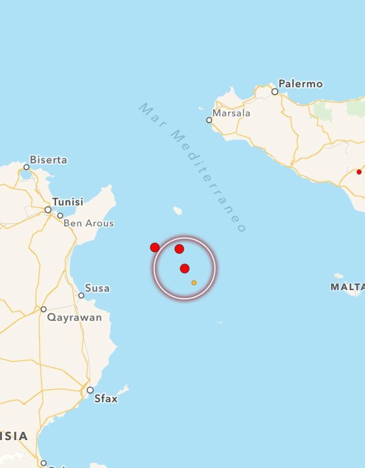 Un terremoto di magnitudo 3.4 si è verificato nel Canale di Sicilia meridionale alle 13:14 ad una profondità di 10 km.