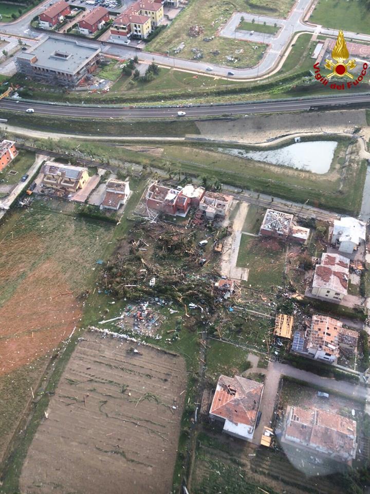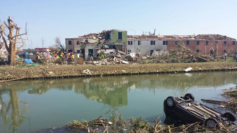 I tornado sono fenomeni da sempre più frequenti anche in Italia, soprattutto nell’alto Adriatico e nella Laguna Veneta che è una delle aree di tutto il Mediterraneo a più alto rischio tornado. Qui, infatti, si sono verificati alcuni dei tornado più devastanti della storia. Il più recente è stato quello della Riviera del Brenta, che l’8 luglio 2015 (quindi meno di un anno fa) provocava una vittima e numerosi feriti, oltre a danni ingentissimi, nella pianura veneta, ad un passo dal litorale. Quel fenomeno è stato ben più violento rispetto a quello di oggi, devastando diversi chilometri di pianura e radendo letteralmente al suolo numerose abitazioni di pregio.