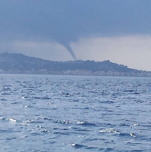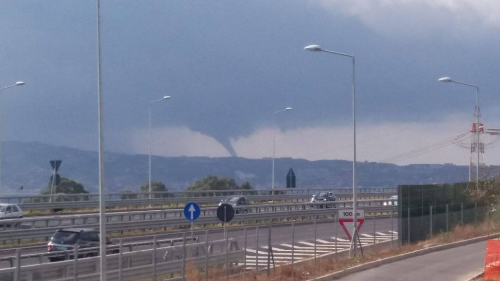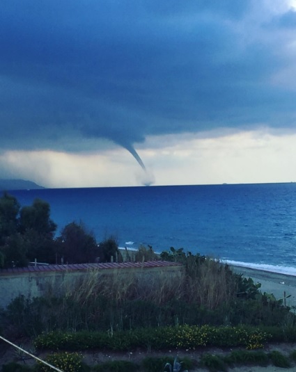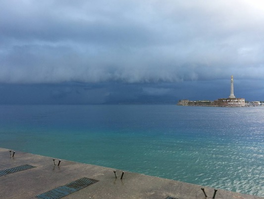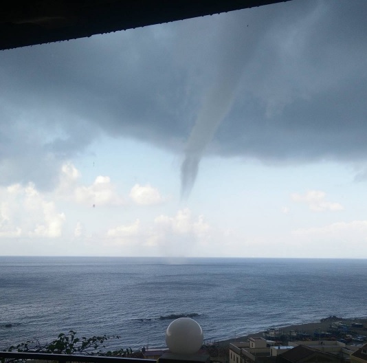 Il maltempo che da ieri sta colpendo l’estremo Sud Italia sta degenerando in questo pomeriggio tra Calabria e Sicilia. La tromba d’aria, proveniente dal basso Tirreno, sta scavalcando i colli peloritani (le foto sono scattate dalla Calabria). Ha attraversato il basso Tirreno proprio di fronte Capo Peloro. Attenzione, quindi, tra Scilla & Cariddi, dove il maltempo imperversa da ieri sera soprattutto nei settori settentrionali dello Stretto. Le piogge più forti hanno interessato Barcellona Pozzo di Gotto, dove tra ieri sera e stamattina sono caduti oltre 40mm di pioggia. Brusco il calo termico, con una temperatura massima che oggi non ha superato i +26°C come se fossimo già ad ottobre.