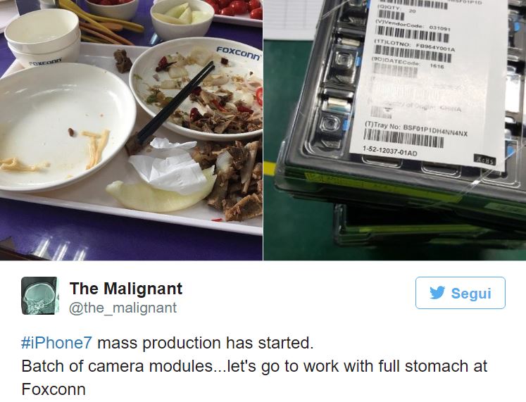 Mancano ormai soltanto pochi mesi alla presentazione ufficiale che Apple farà, all’interno della quale, verrà svelato definitivamente al mondo il prossimo gioiellino della mela, iPhone 7. Un tweet pubblicato da @the_malignant sul social network dei 140 caratteri, Twitter, conferma attraverso una foto, che il prossimo iPhone 7 abbia iniziato il suo processo di produzione di massa.