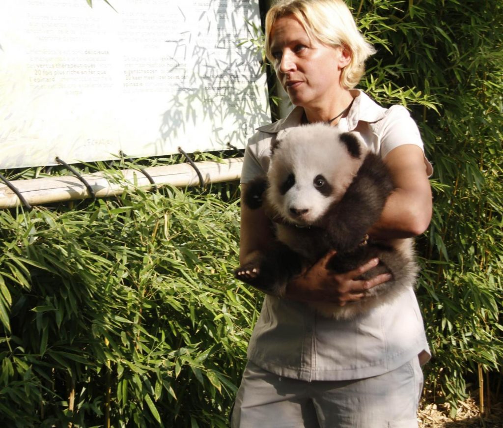 Le foto scattate il 15 settembre 2016 mostrano un cucciolo di panda gigante, chiamato “Tian Bao”, che vive presso il Pairi Daiza animal park di Brugelette, Belgio.