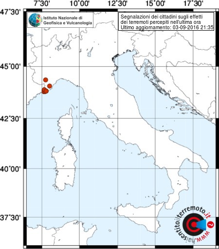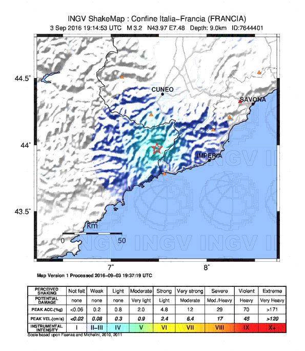 Paura tra Francia e Liguria alle 21:14 di questa sera per una scossa di terremoto di magnitudo 3.2, con epicentro proprio al confine, nella zona di Breil. La scossa s’è prodotta a 14,7km di profondità ed è stata distintamente avvertita a Monaco, Nizza, Ventimiglia, Sanremo e altre località della provincia di Imperia in Liguria, e persino di Cuneo nel basso Piemonte.
