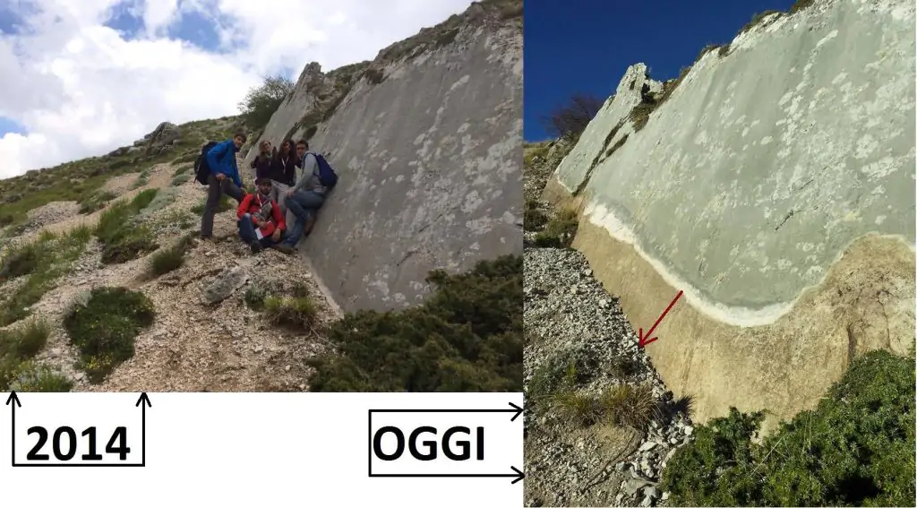 Su facebook il geologo e professore, Paolo Galli, che è anche dirigente del Dipartimento della Protezione civile, sta documentando l’accaduto con incredibili fotografie che in ambienti scientifici hanno già fatto il giro del mondo. Le pubblichiamo nella gallery a corredo dell’articolo: Galli testimonia “mezzo metro di fagliazione per chilometri, mai visto nulla del genere se non Irpinia”. Impressionante, poi, l’immagine del “rigetto” della faglia, visibile nel punto di roccia liscia in cui il piano di faglia affiora in superficie. Oltre un metro di faglia è venuto alla luce grazie all’abbassamento della crosta terrestre di oltre un metro!