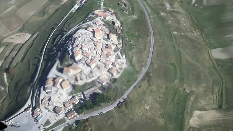 La violenta scossa di terremoto di magnitudo 6.5 che alle 07:40 di stamattina ha scosso l’Italia con epicentro sull’Appennino e precisamente nei Monti Sibillini, ha provocato un abbassamento del suolo di circa un metro in tutta l’area (vastissima, tra Umbria e Marche) dell’epicentro. Soltanto per un piccolo-grande miracolo stavolta non ci sono state vittime, ma le montagne dei Monti Sibillini sono letteralmente sventrate. Una frattura lunga centinaia di metri si è aperta lungo la “costa” del monte del Redentore, vicino a Castelluccio di Norcia, il delizioso borgo tristemente raso al suolo. Il ‘taglio’, constatato da un sopralluogo aereo dei vigili del fuoco, si trova alcune centinaia di metri sotto la cima.