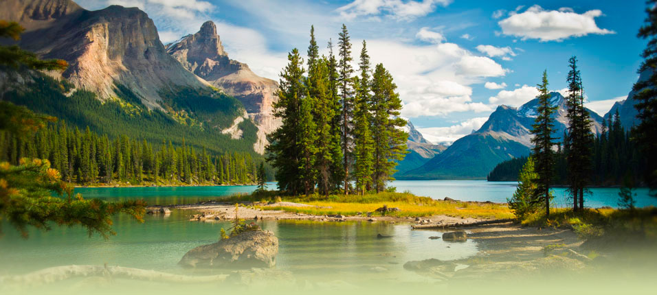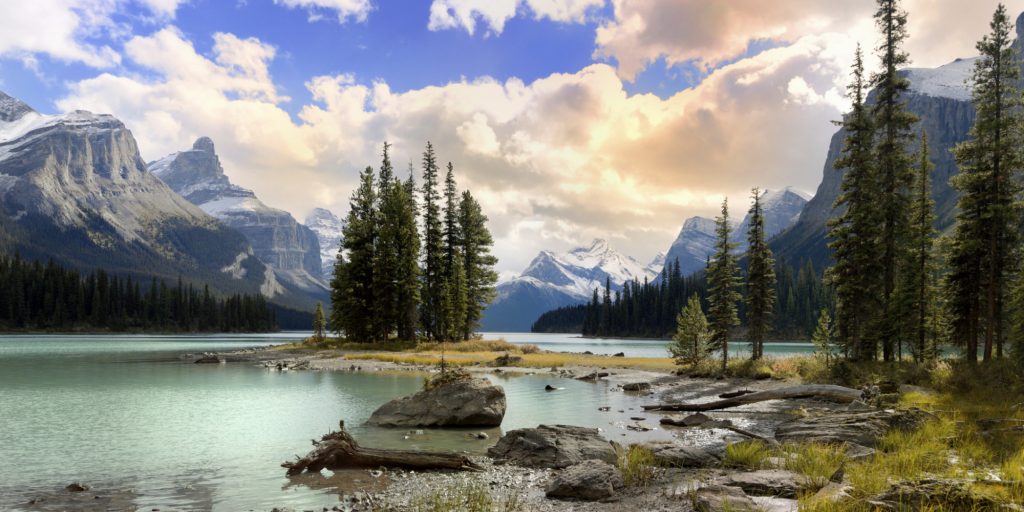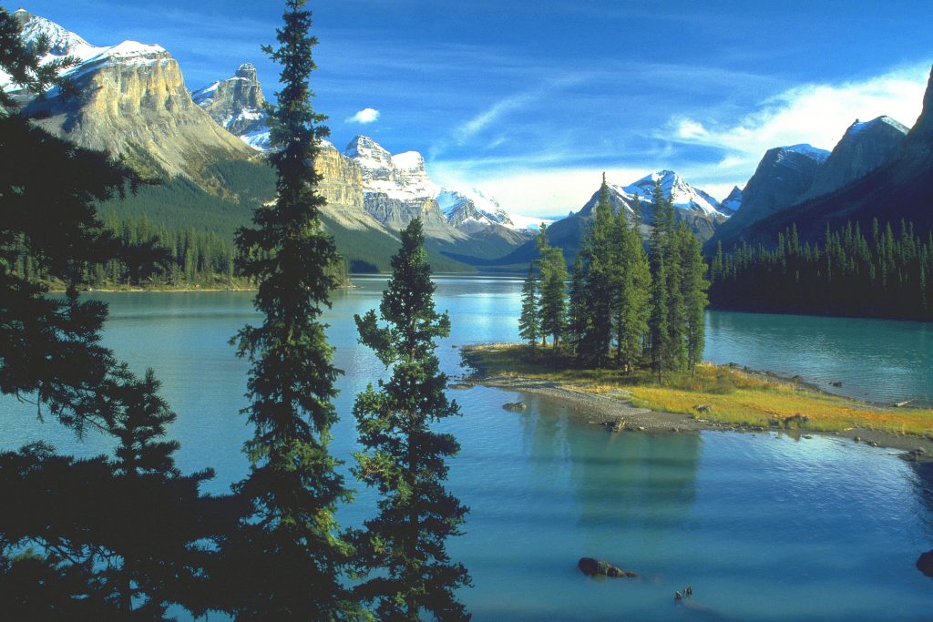 Situato circa 48 km a sud-est della cittadina di Jasper, al termine della Maligne Road, Maligne Lake, nel Jasper National Park, il parco nazionale più noto ed esteso in Alberta, Canada, è tra i laghi glaciali più grandi delle Montagne Rocciose Canadesi.